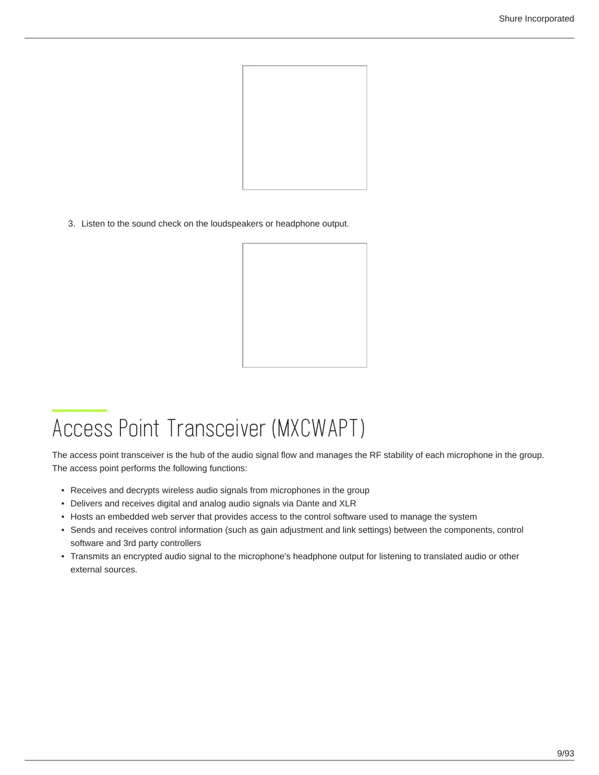 The access point transceiver is the hub of the audio signal flow and manages the RF stability of each microphone in the group.