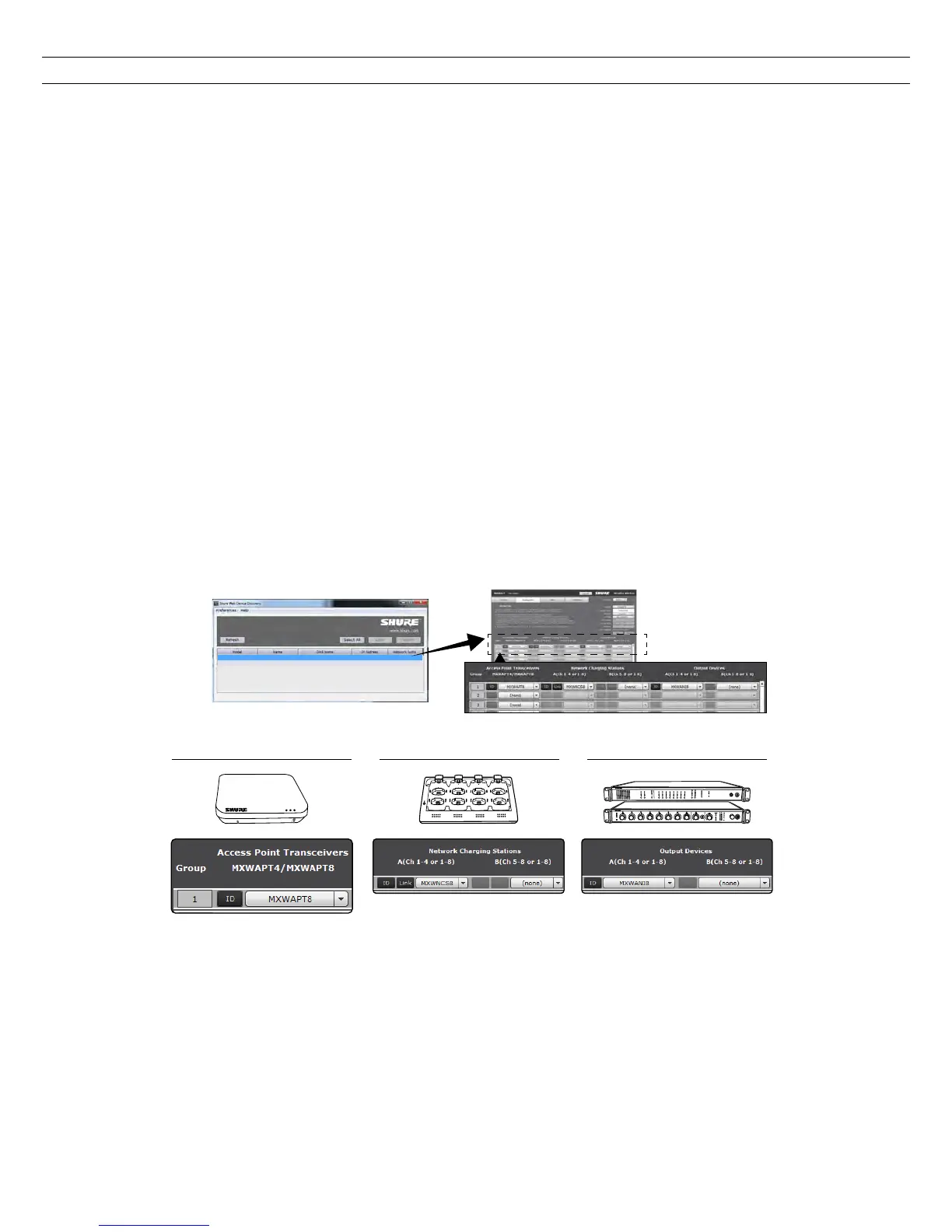 Use the Shure Web Discovery application to view all MXW Access Point Transceivers (APTs) on the network. Double-click on an APT to open the software,