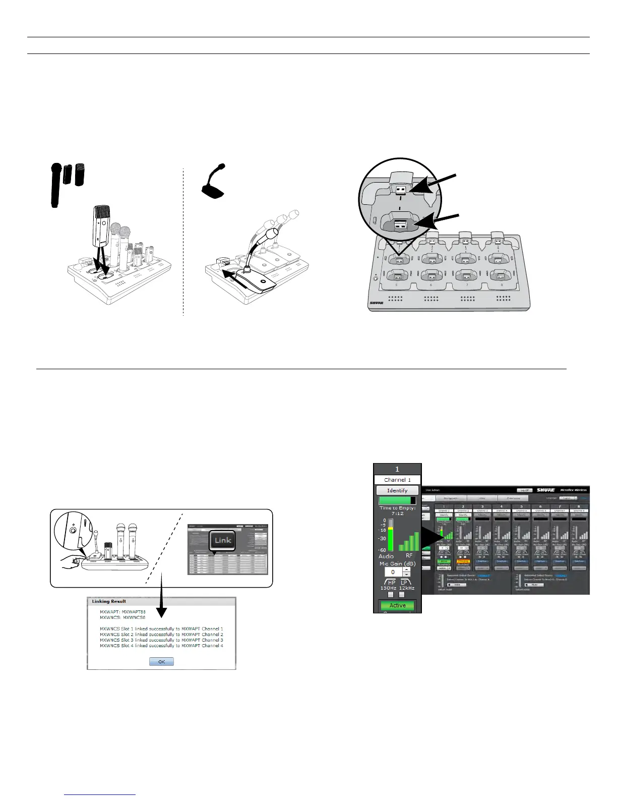 Use the Networked Charging Station (NCS) to Link microphones to Access Point channels. Slots in the charger are mapped to the APT according to the