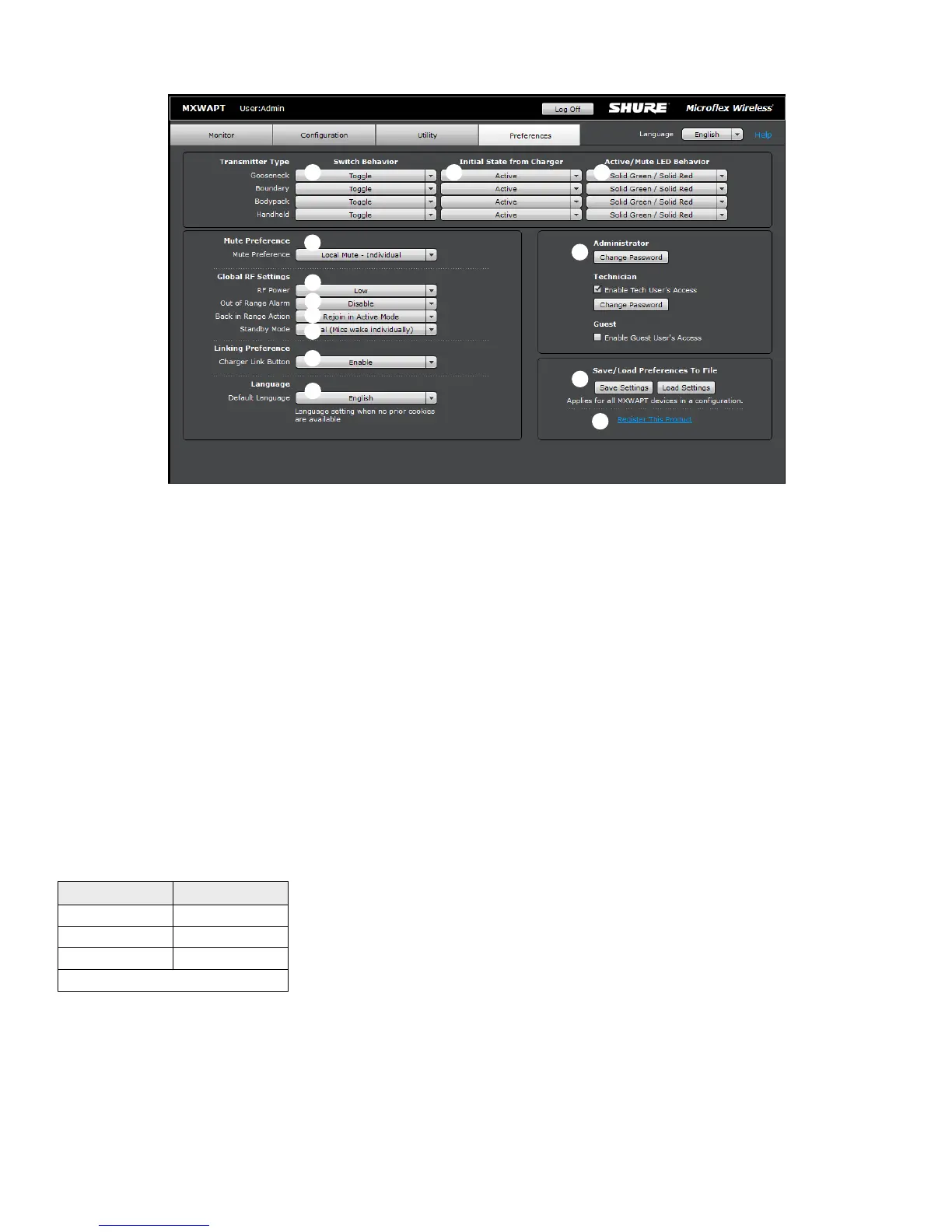 • Local Mute - All: All transmitters mute when any transmitter is muted.