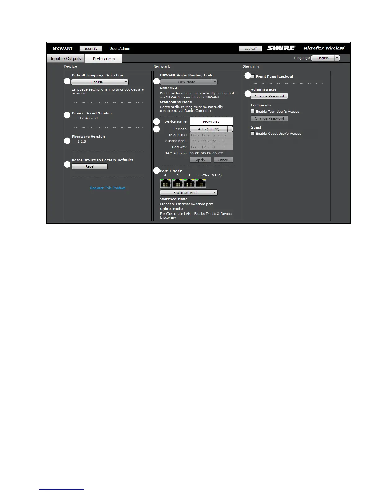 Dante digital audio and the Shure Web Device Discovery application is