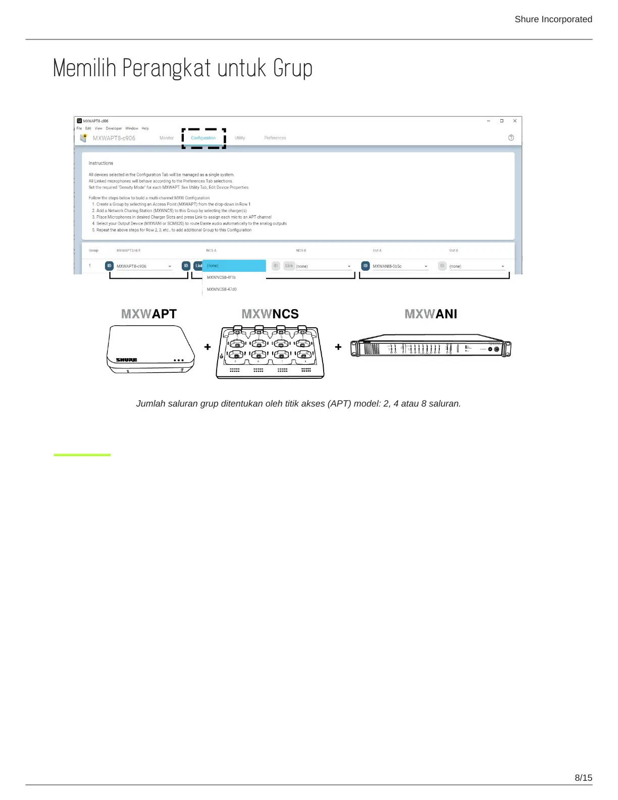 Jumlah saluran grup ditentukan oleh titik akses (APT) model: 2, 4 atau 8 saluran.