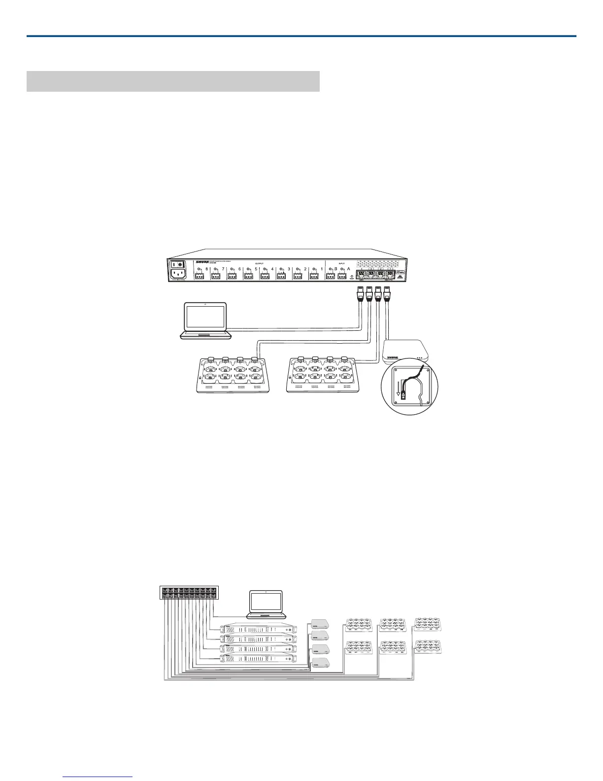 When an installation requires more than eight channels, additional MXW components can be connected to expand the system. A gigabit router is required to
