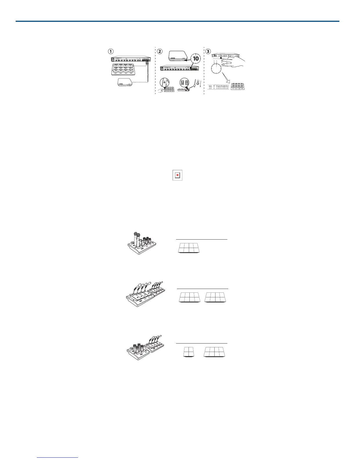 This setup is used to fill an 8-channel group with gooseneck microphones. Channels are rerouted when an additional charger is added to the group. (The