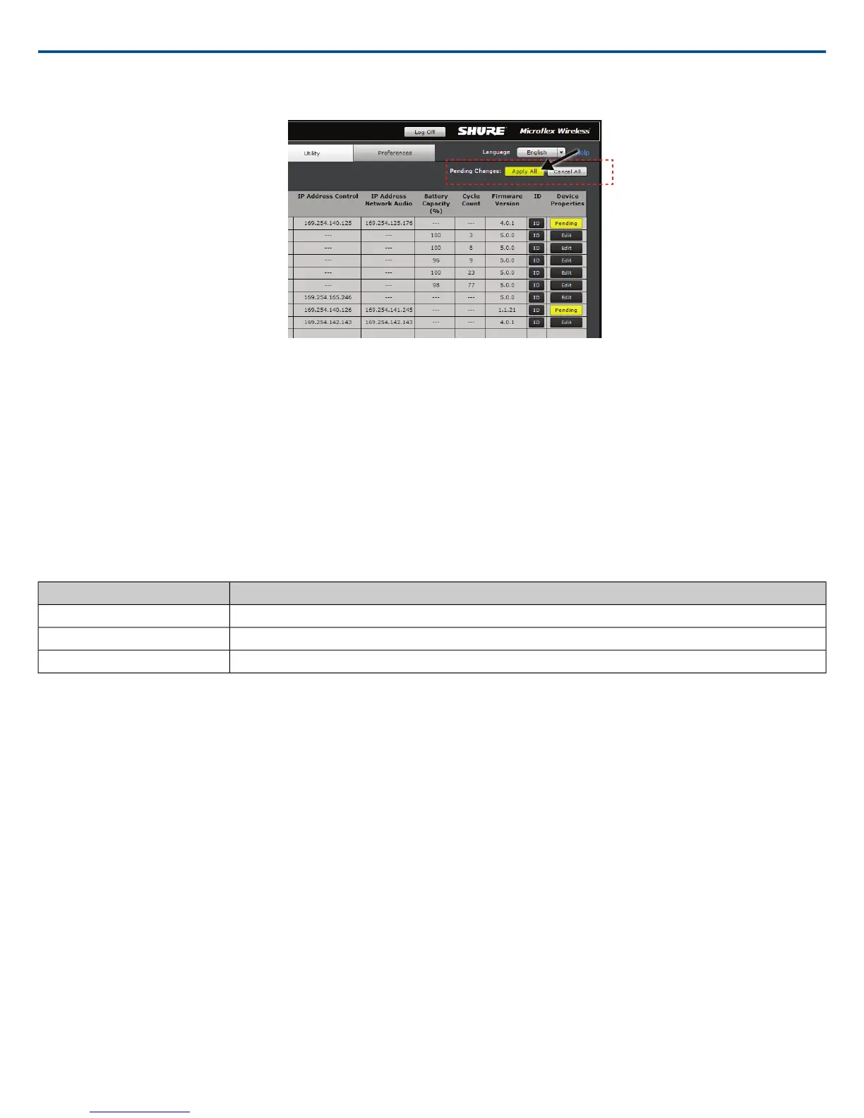 6. To send updates to the devices, select Apply All to the Pending Changes field of the Utility page.