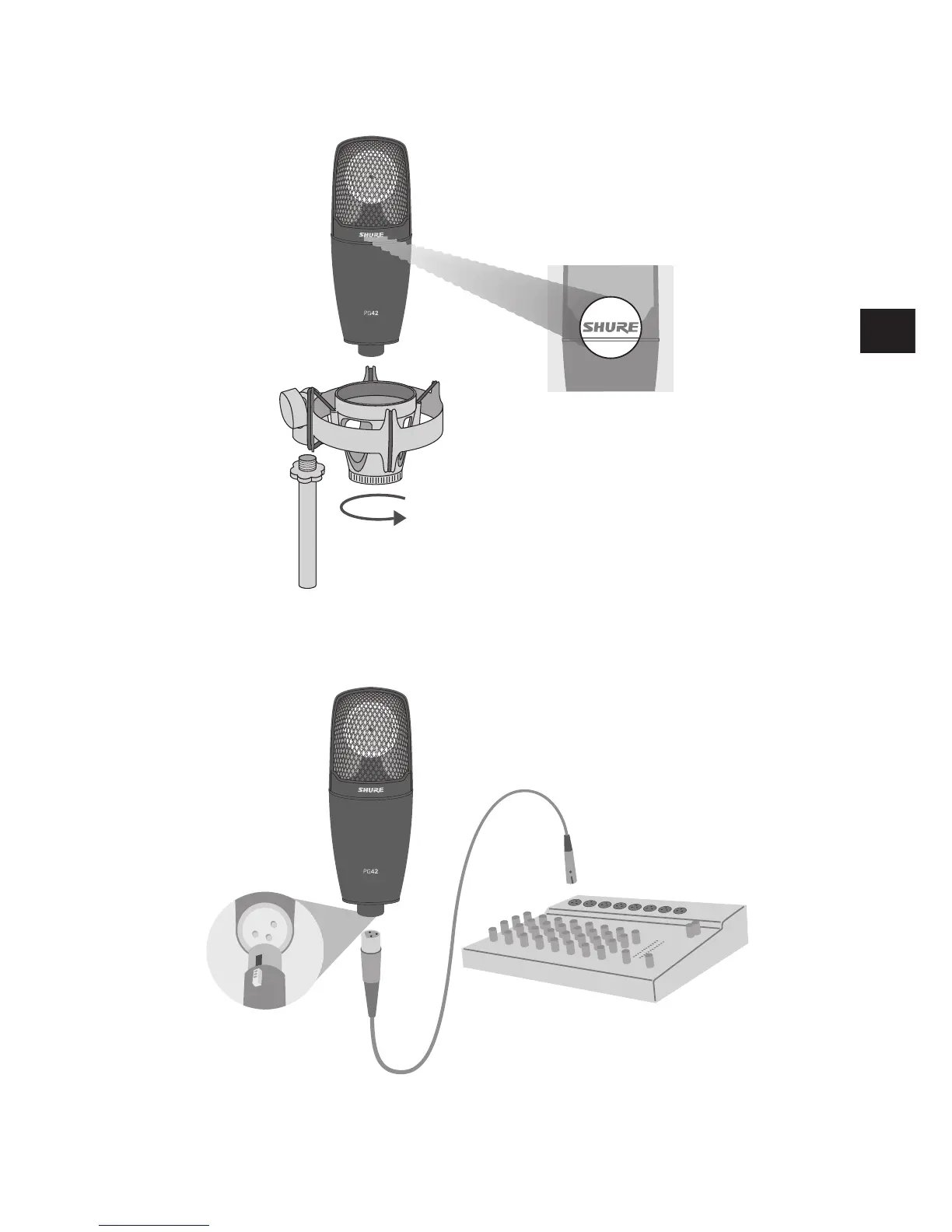 Note: Condenser microphones such as the PG42 require phantom power supplied by a