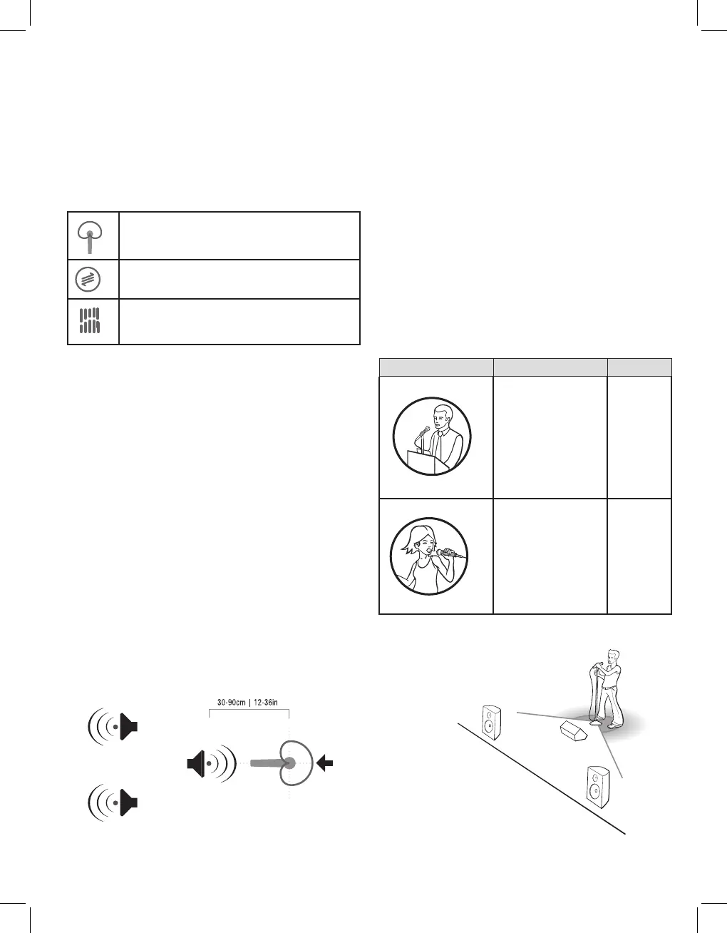 ボーカルマイクロホンはハンドルを持ち、手でグリルを覆わないように•