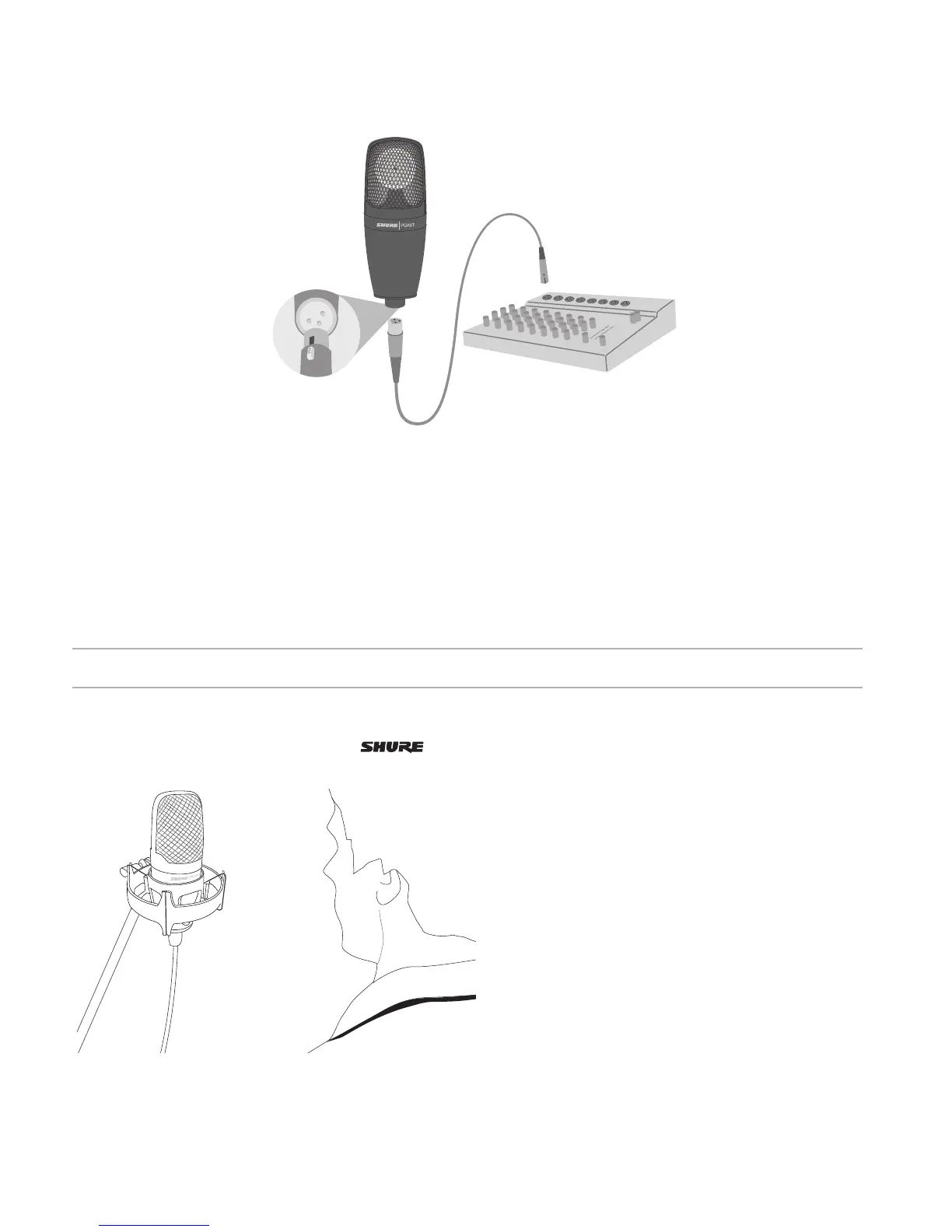 When connecting to a mixer, use only balanced, microphone-level inputs with phantom power. Most mixers have a switch