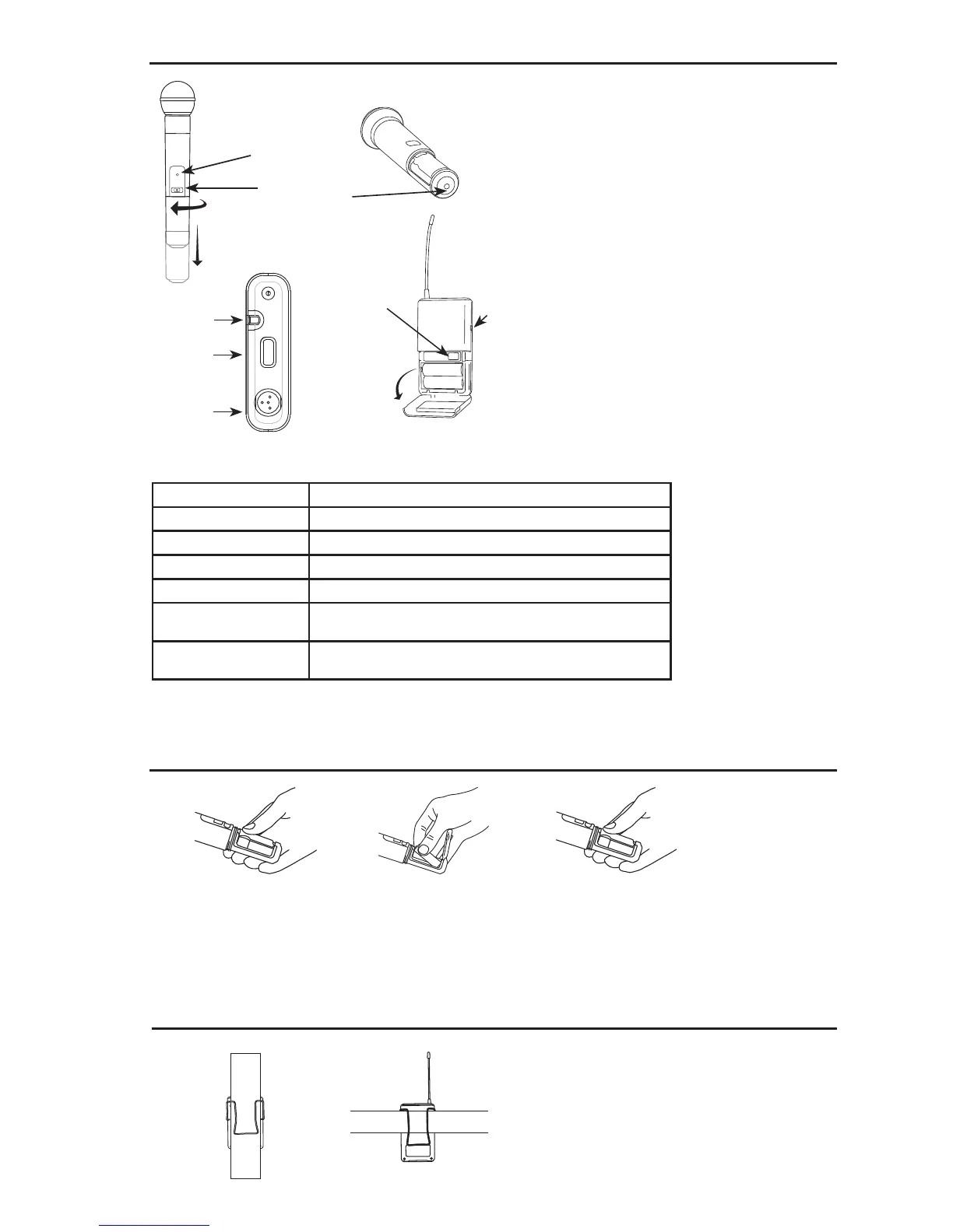 図のように、送信機をベルトに留めるか、送信機のクリップにギタ