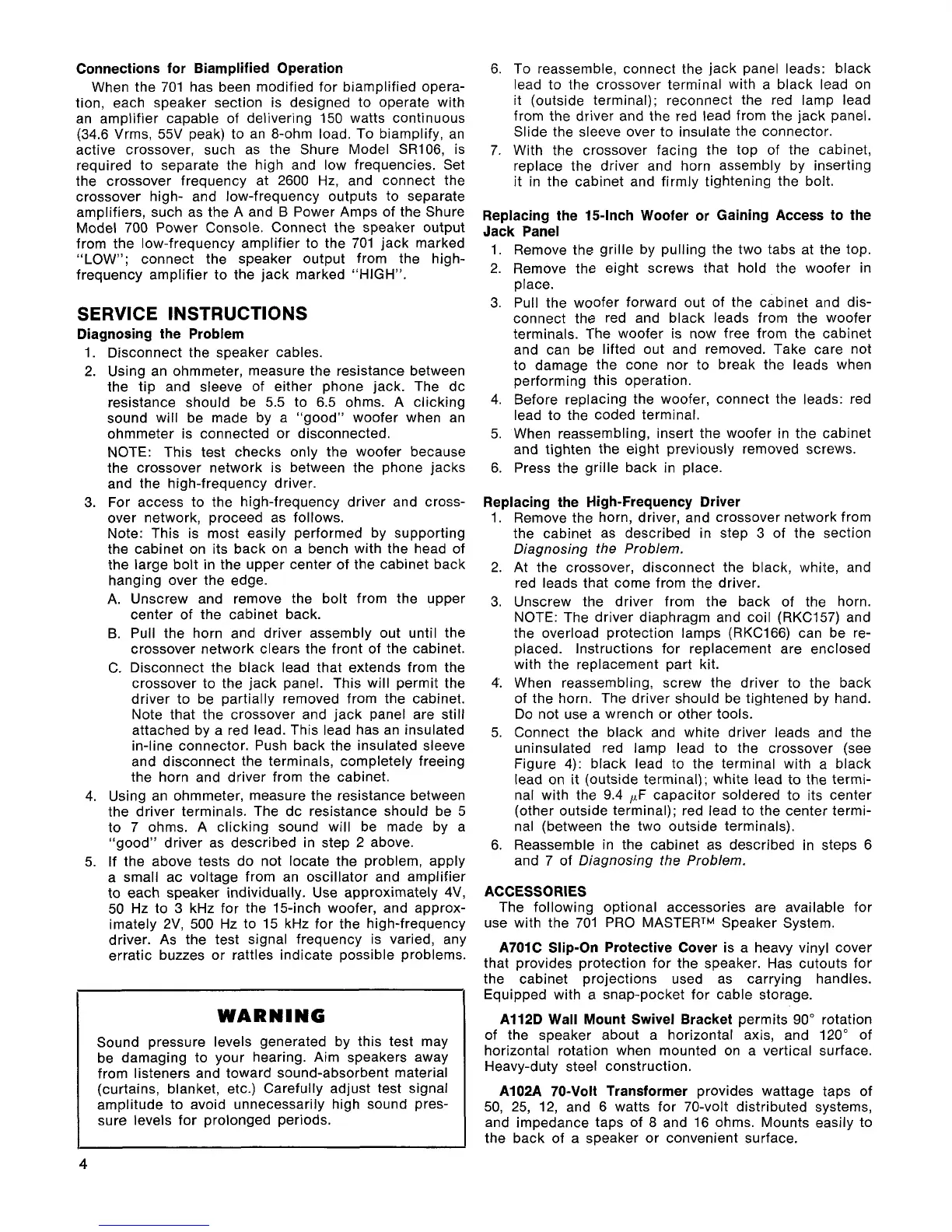 imately 2V, 500 Hz to 15 kHz for the high-frequency