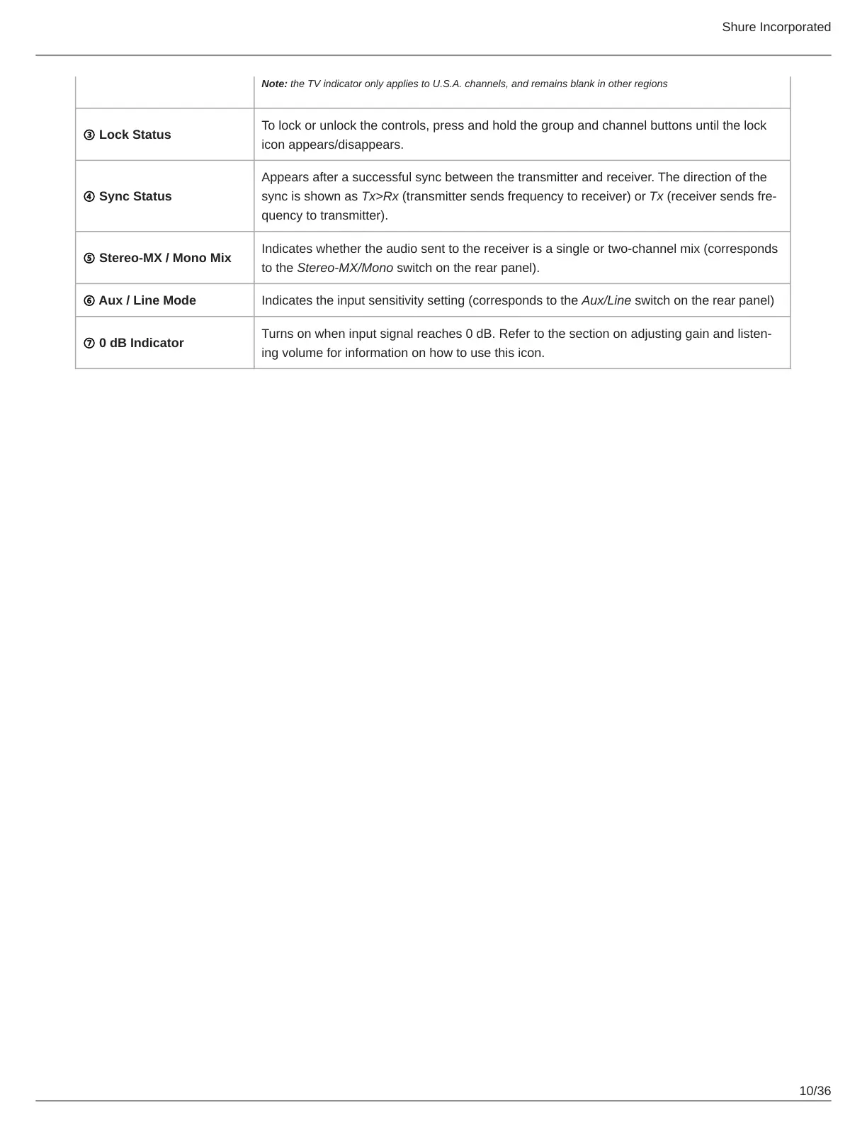Note: the TV indicator only applies to U.S.A. channels, and remains blank in other regions