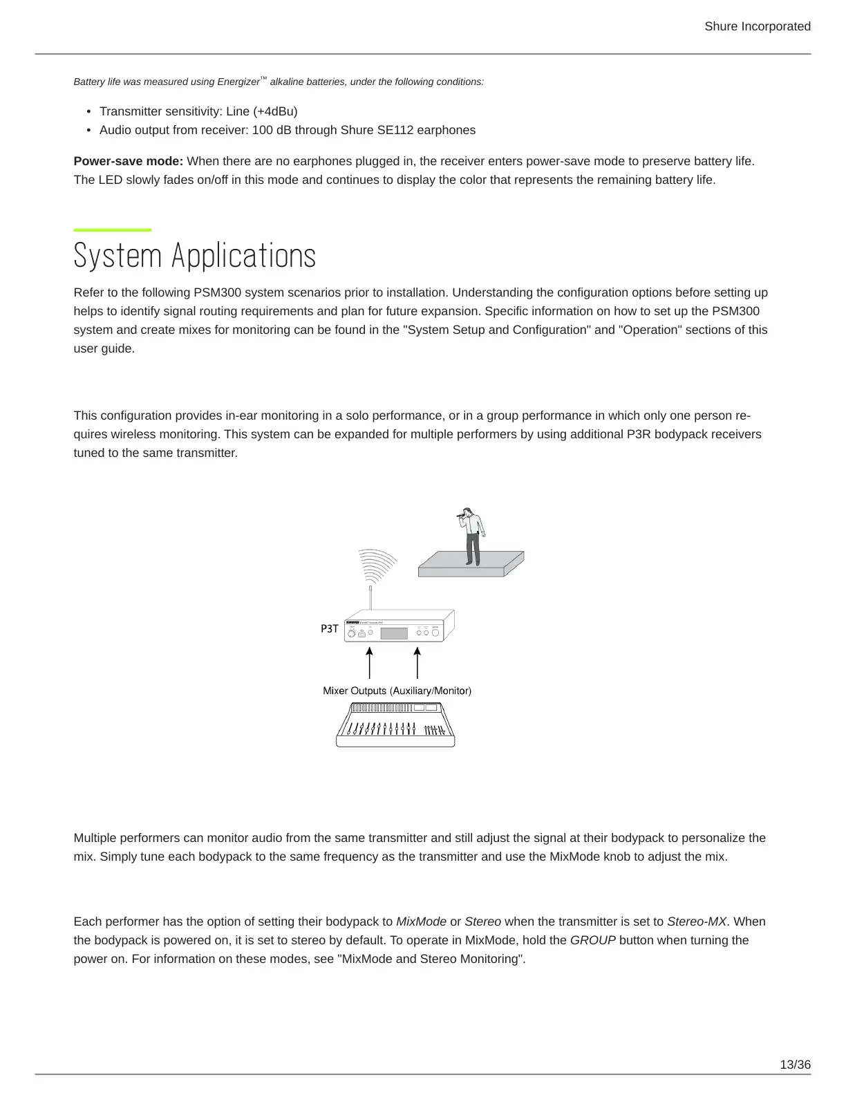 quires wireless monitoring. This system can be expanded for multiple performers by using additional P3R bodypack receivers