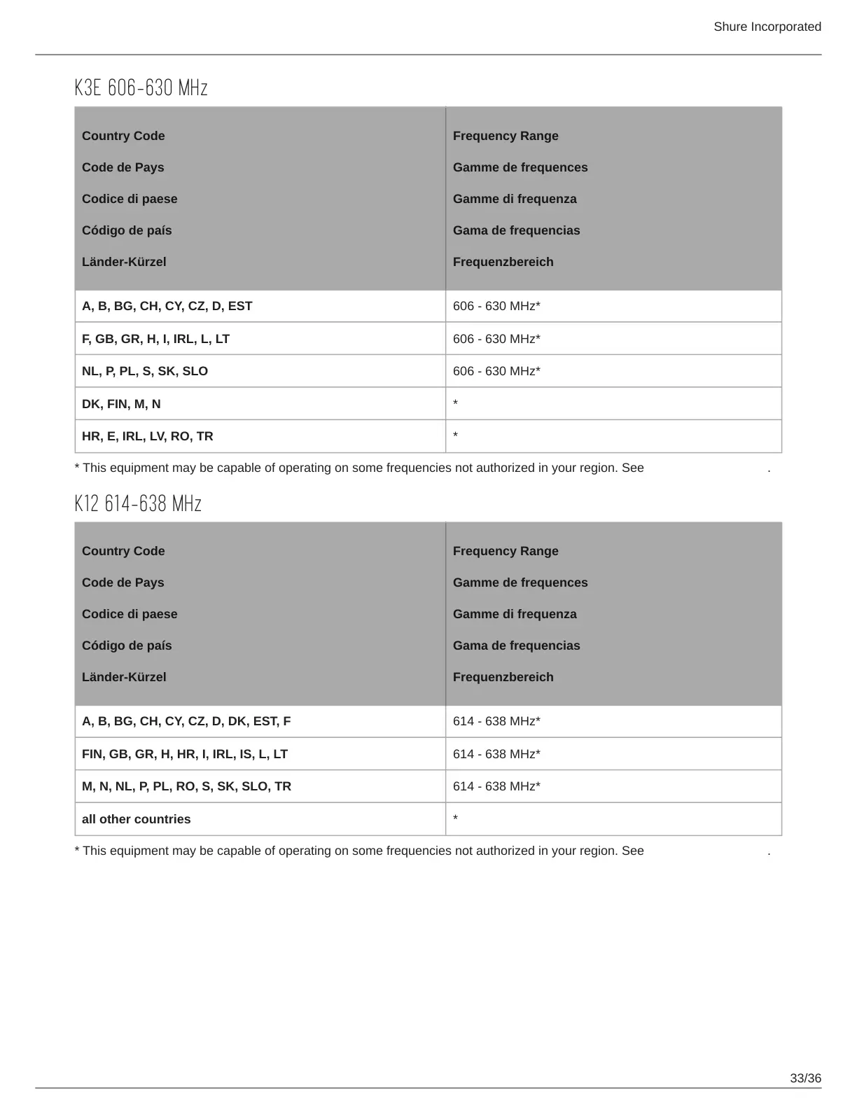 NL, P, PL, S, SK, SLO 606 - 630 MHz*