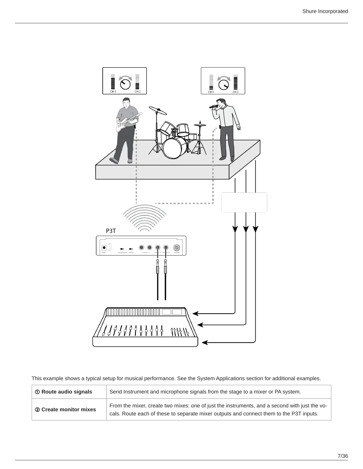 This example shows a typical setup for musical performance. See the System Applications section for additional examples.