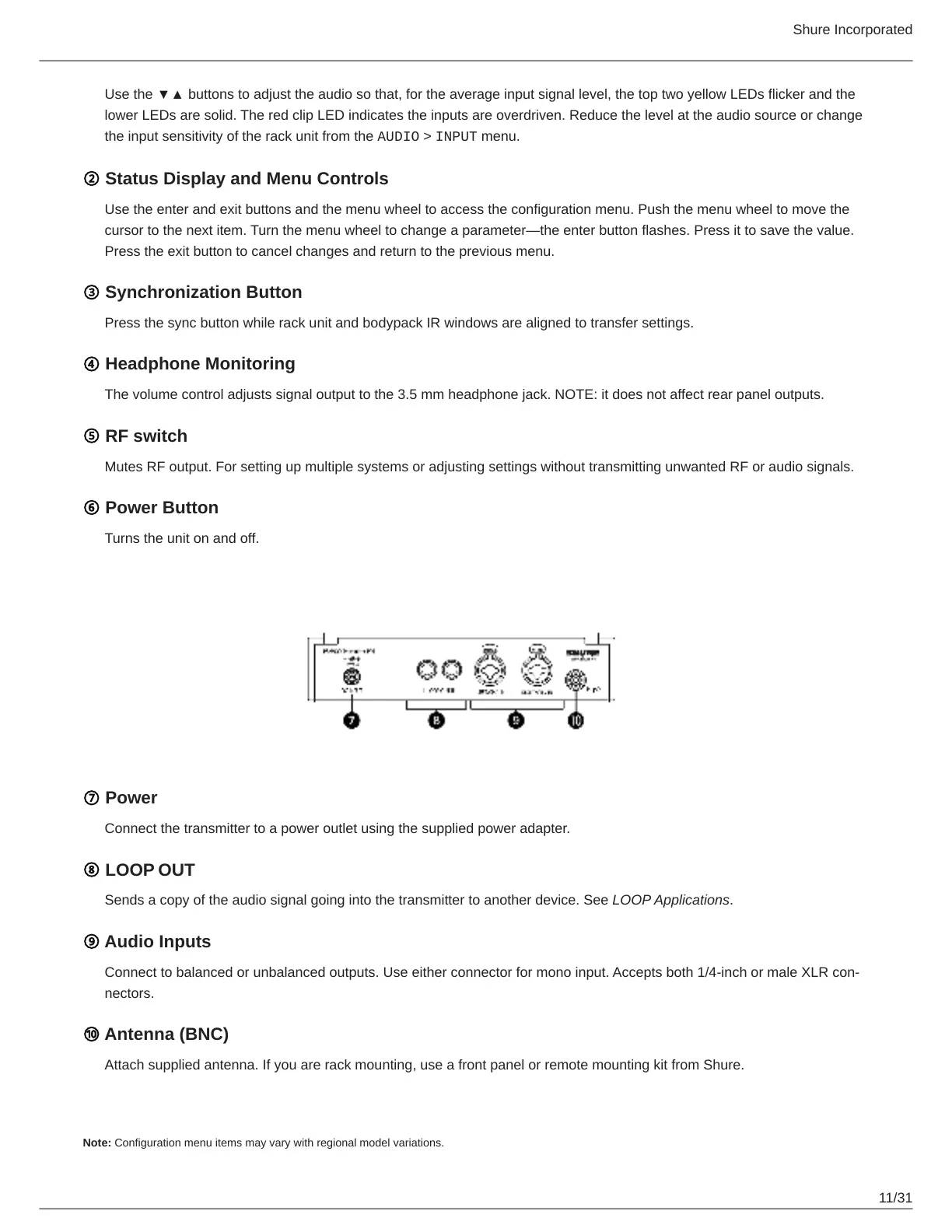 Sends a copy of the audio signal going into the transmitter to another device. See LOOP Applications.