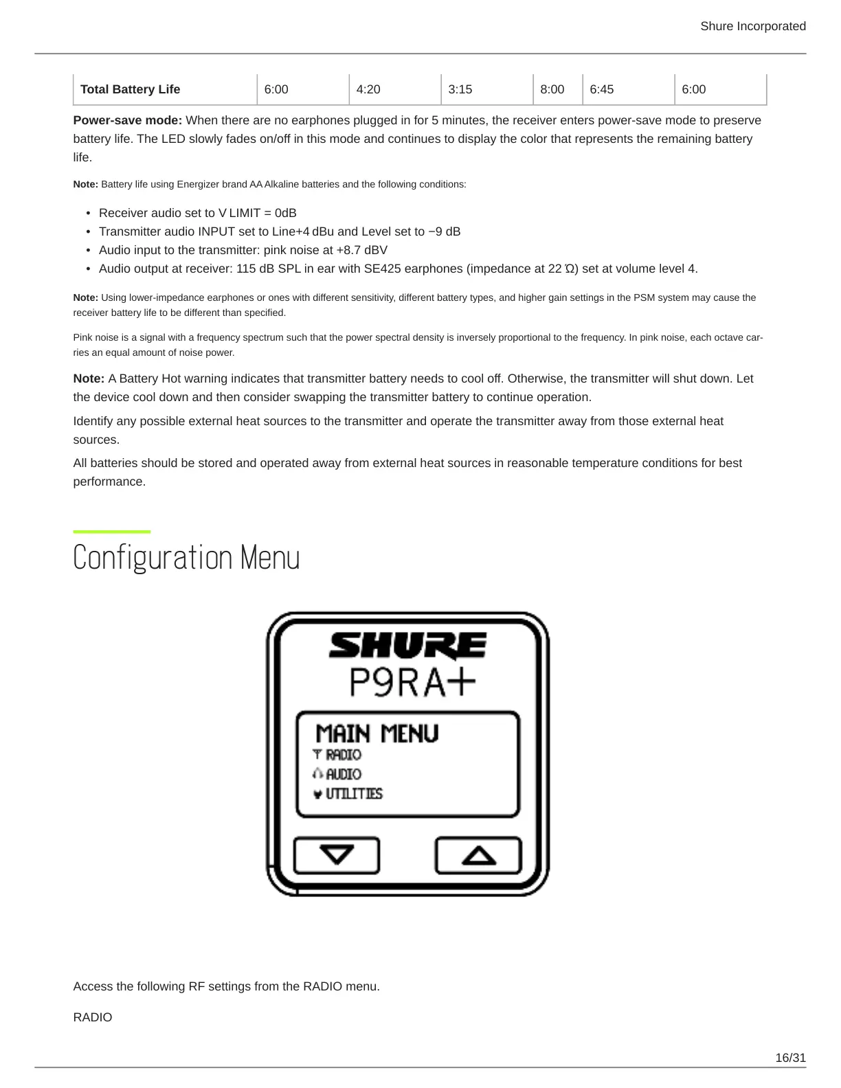 receiver battery life to be different than specified.