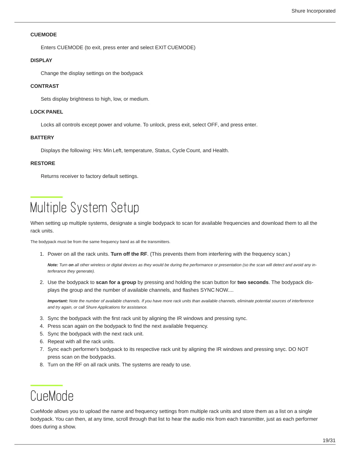 When setting up multiple systems, designate a single bodypack to scan for available frequencies and download them to all the