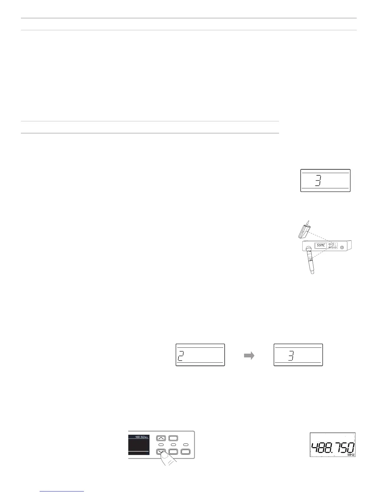 • Scan and IR Sync: The receiver scans the RF spectrum for the best available frequency and an IR sync automatically tunes the transmitter to the