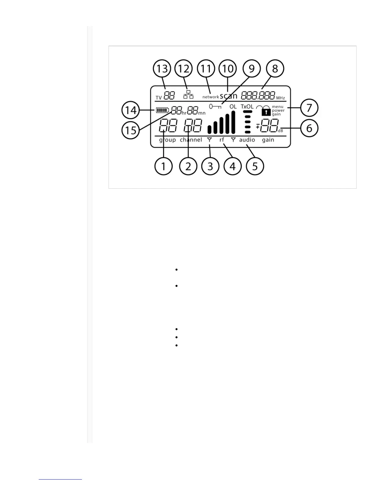 ɥ Gain Level Displays receiver gain setting in 1 dB increments.