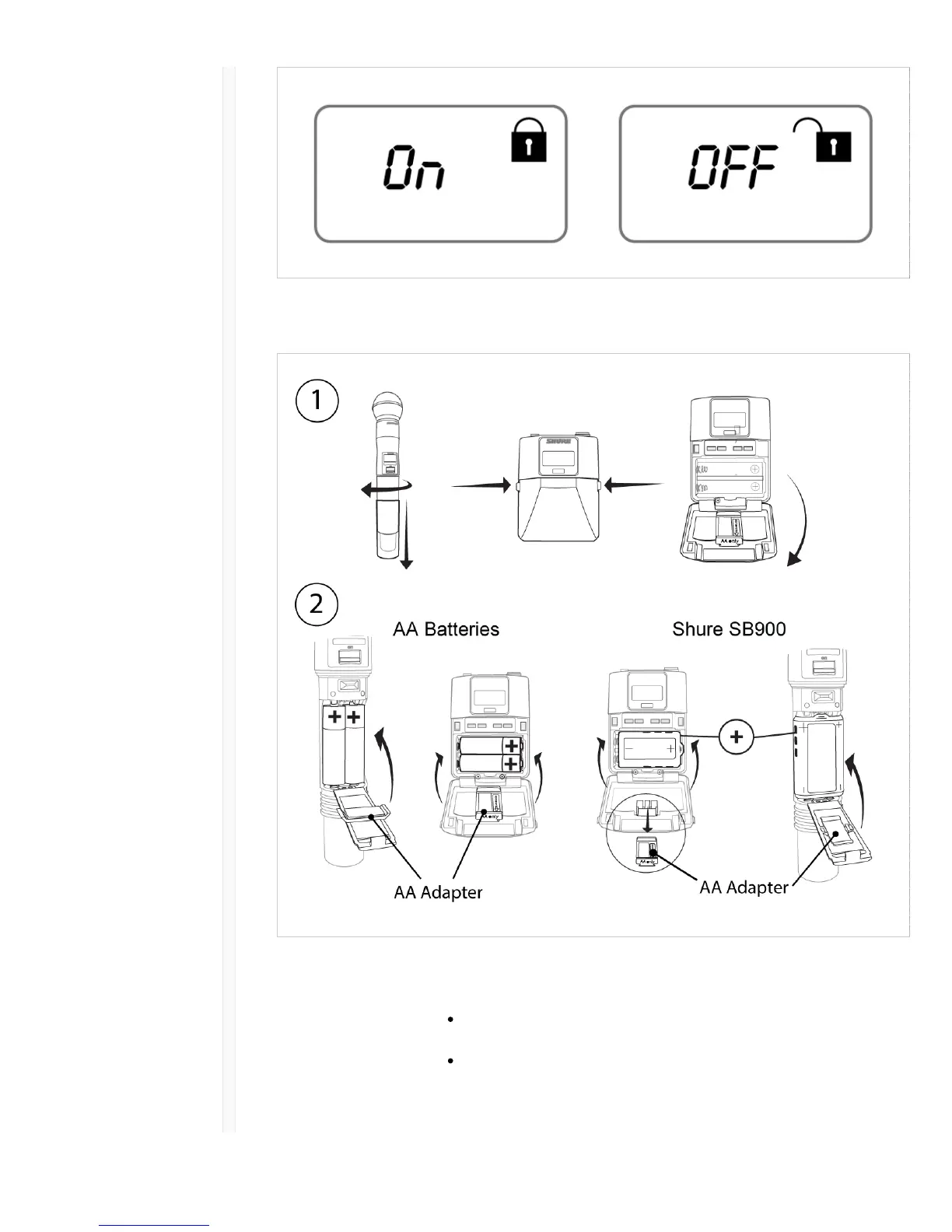 Shure SB900 Battery: Place battery as shown (note polarity markings),