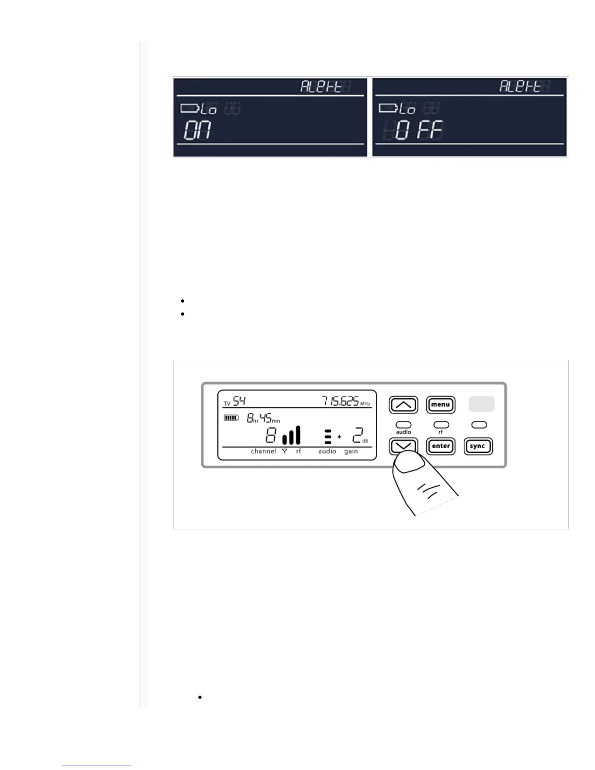 From the receiver home screen, use the arrow buttons to increase or decrease the gain: