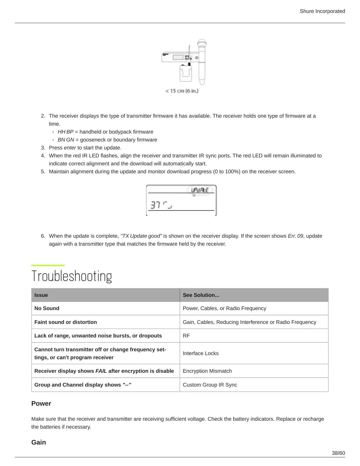 Faint sound or distortion Gain, Cables, Reducing Interference or Radio Frequency