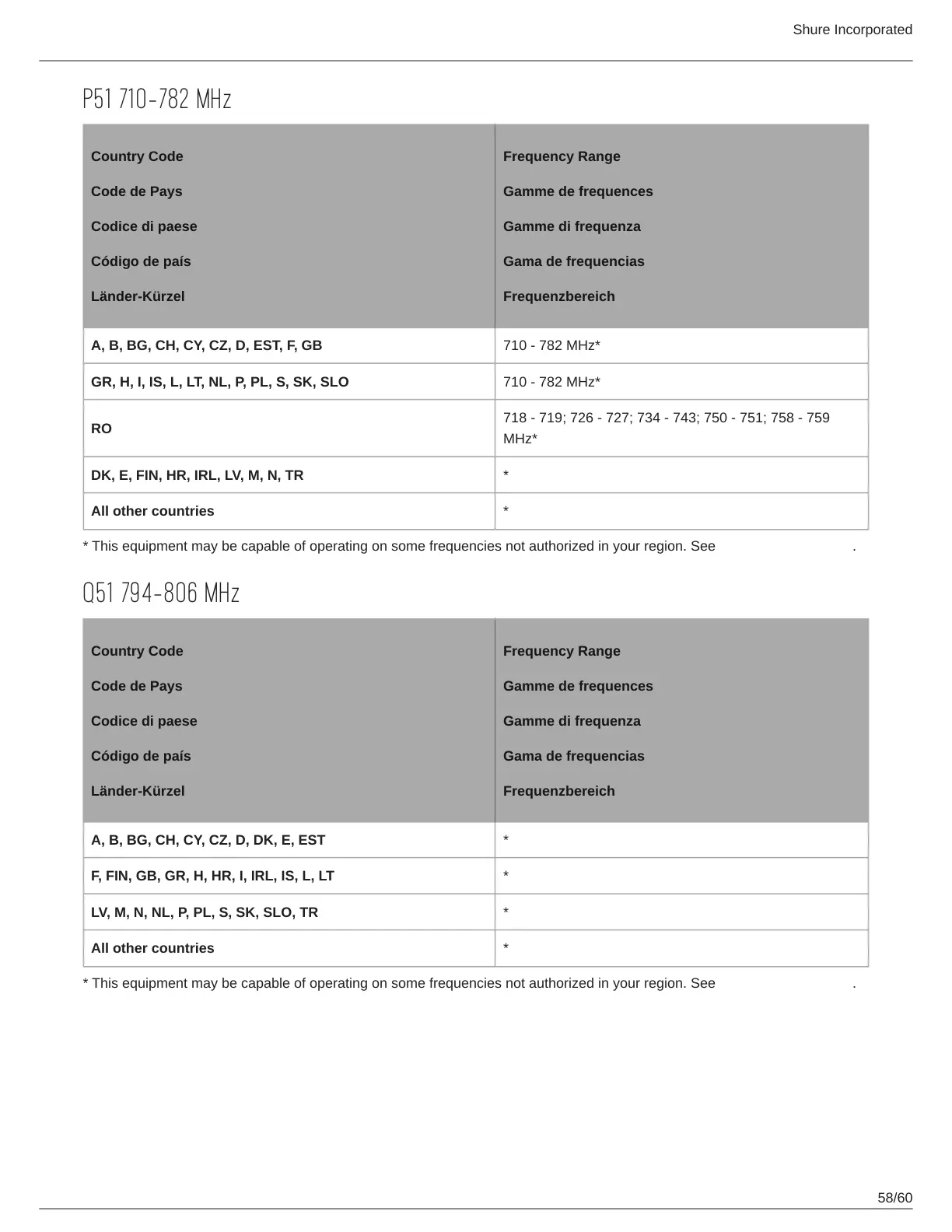 * This equipment may be capable of operating on some frequencies not authorized in your region. See Licensing Information.