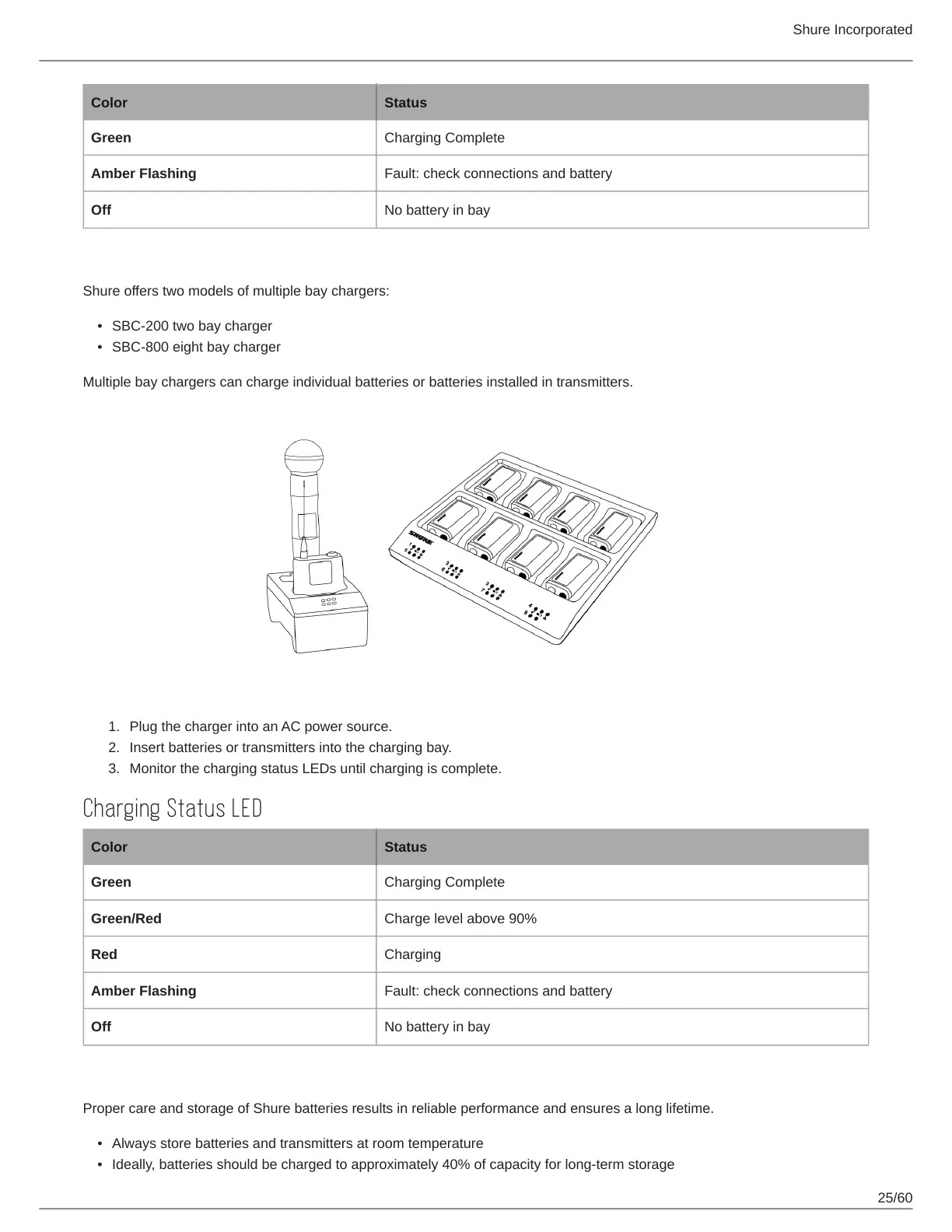 Proper care and storage of Shure batteries results in reliable performance and ensures a long lifetime.