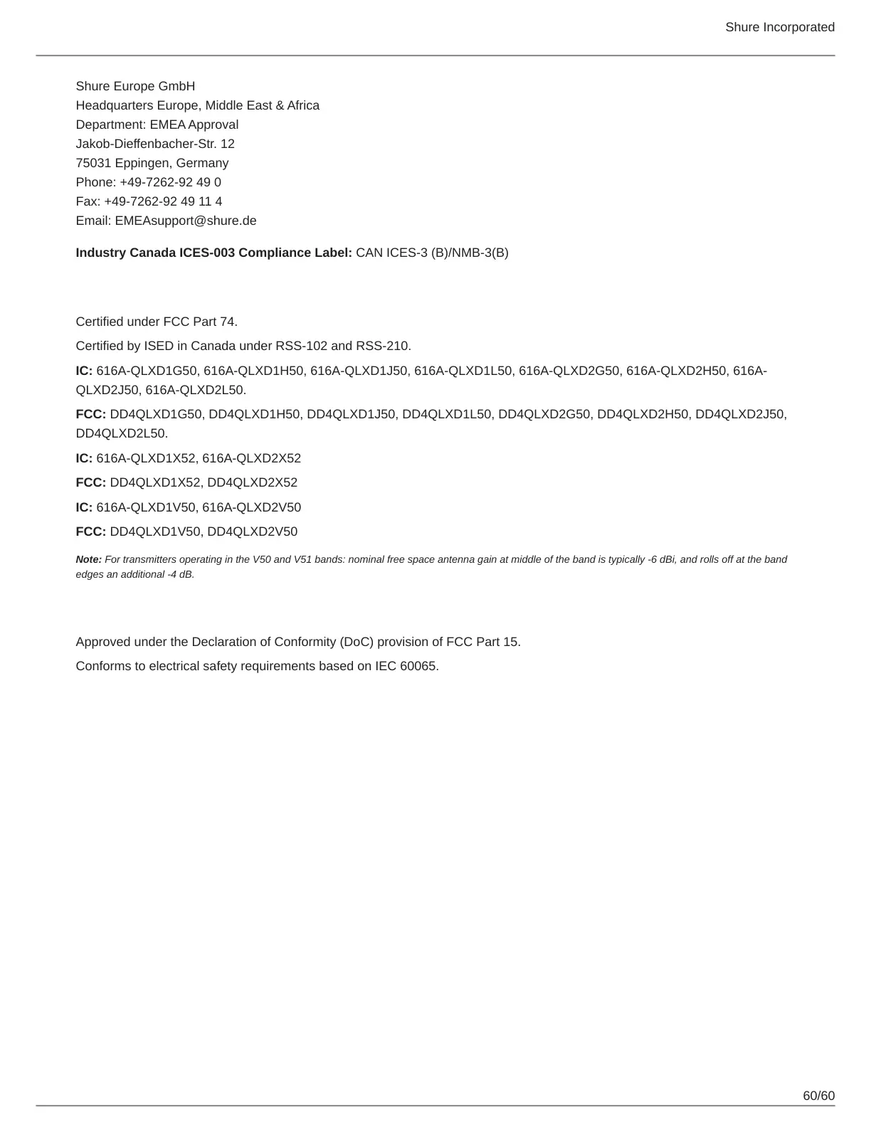 Shure QLXD4 - Certifications - Compliance Details; FCC Compliance Statements