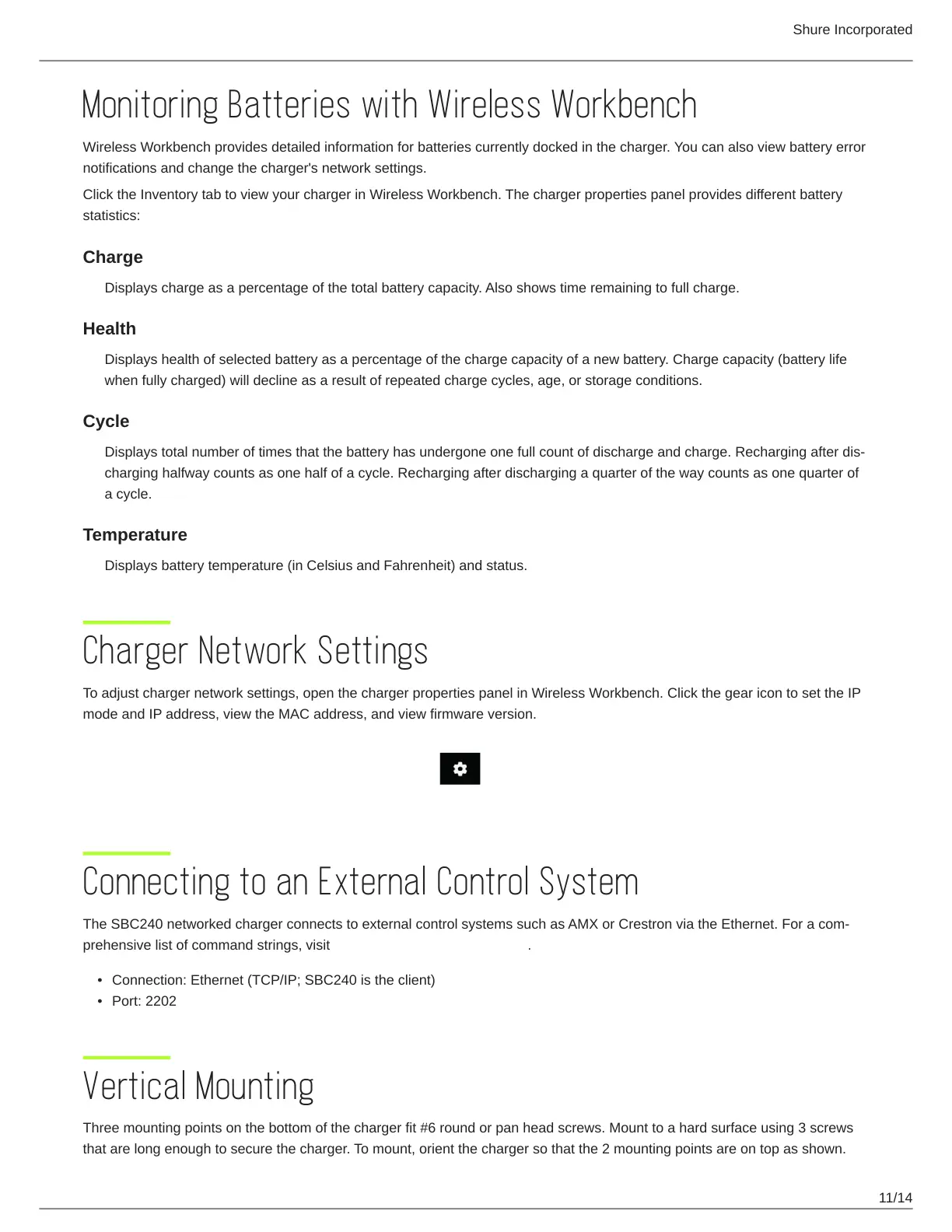 prehensive list of command strings, visit pubs.shure.com/guide/SBC240.
