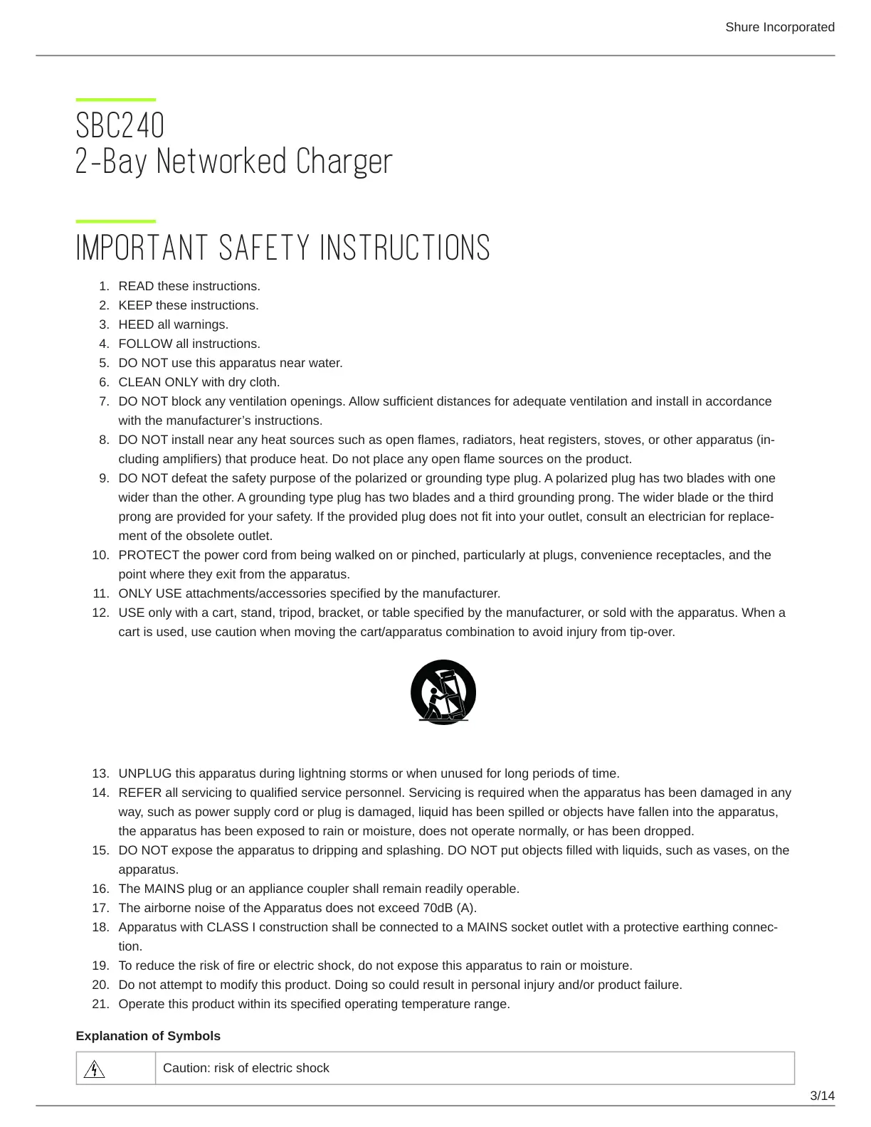 cart is used, use caution when moving the cart/apparatus combination to avoid injury from tip-over.