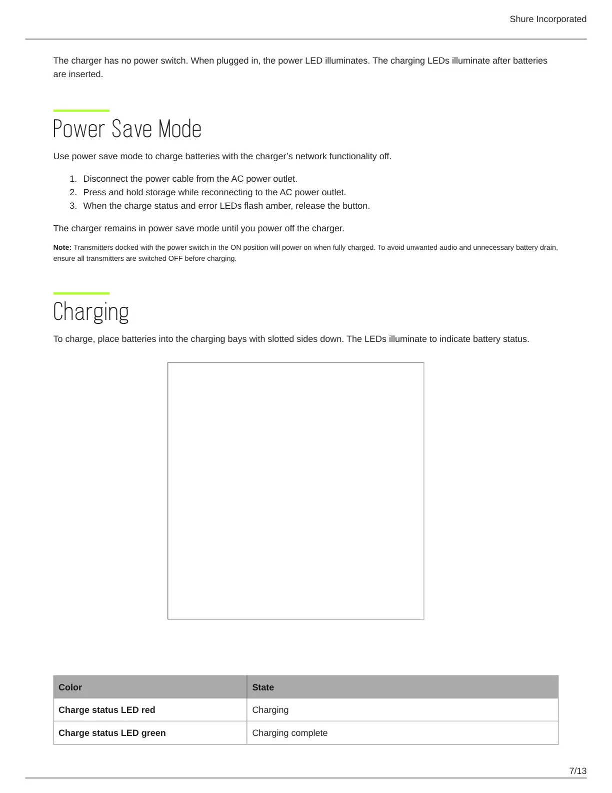 Usepowersavemodetochargebatterieswiththecharger’snetworkfunctionalityoff.
