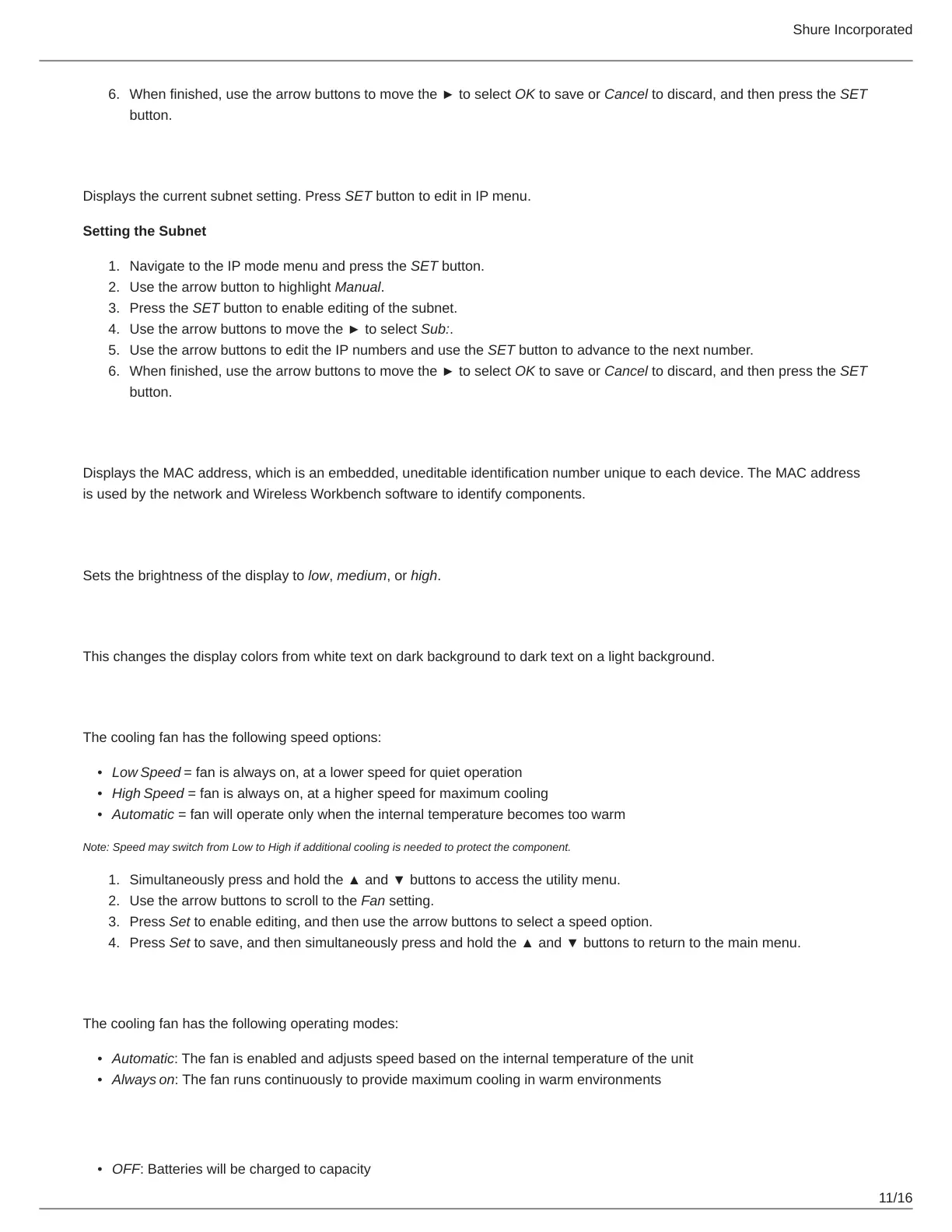 Displays the current subnet setting. Press SET button to edit in IP menu.