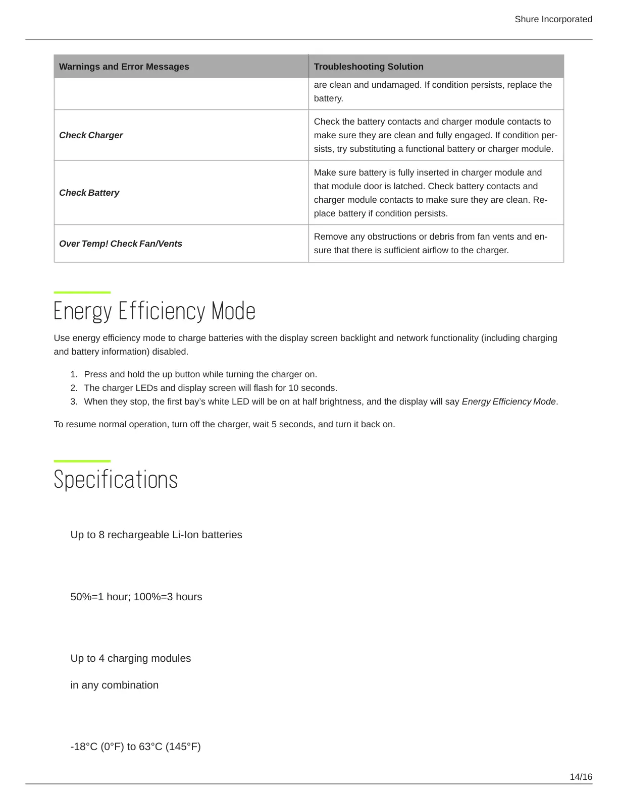 To resume normal operation, turn off the charger, wait 5 seconds, and turn it back on.