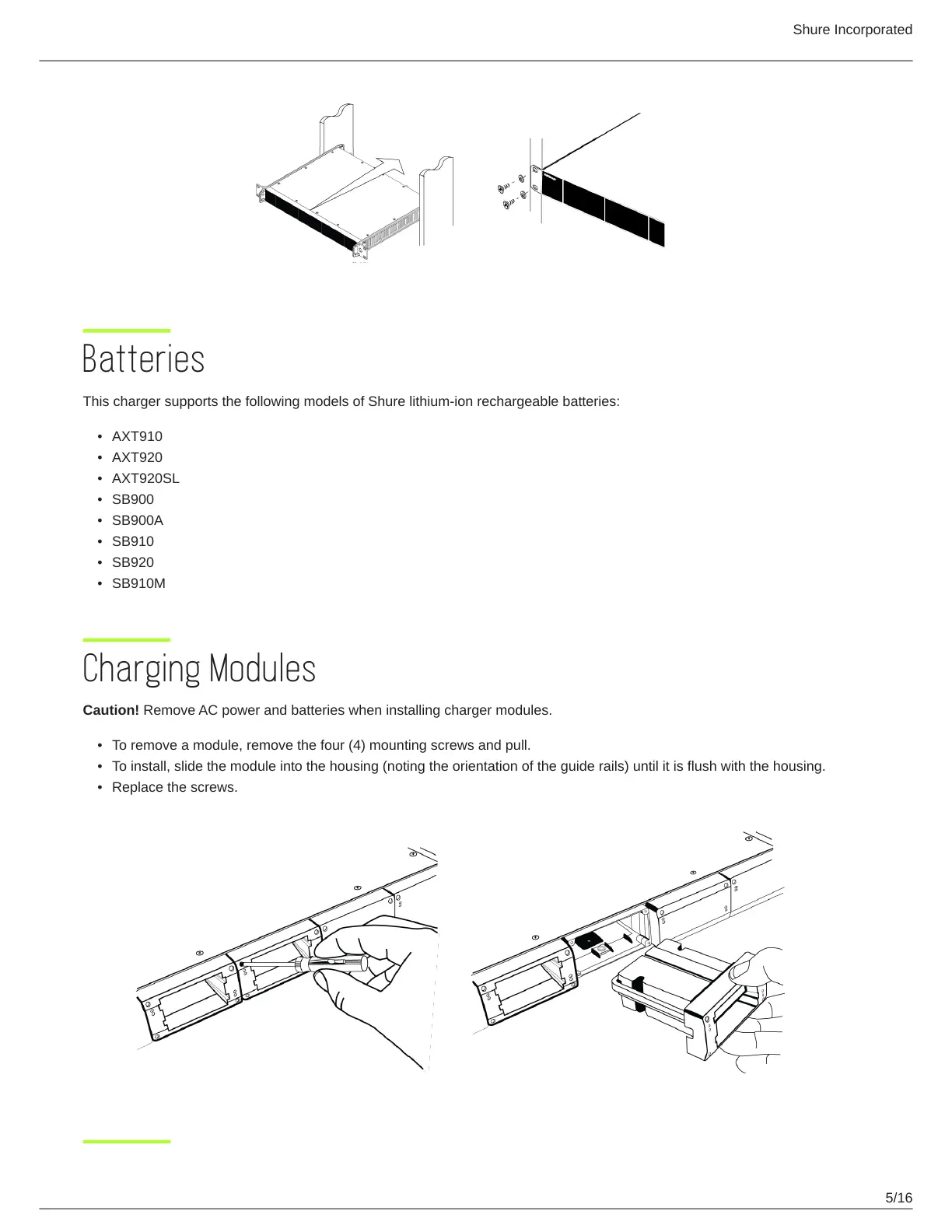 This charger supports the following models of Shure lithium-ion rechargeable batteries: