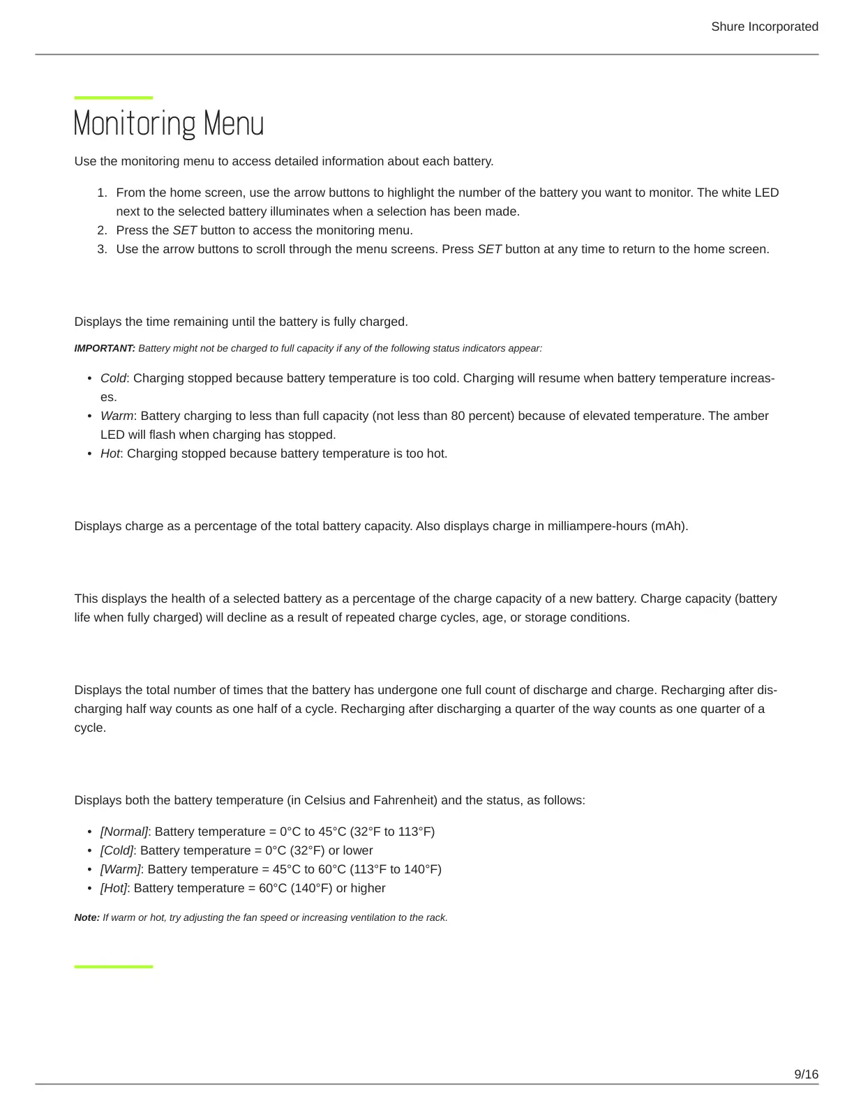 Use the monitoring menu to access detailed information about each battery.