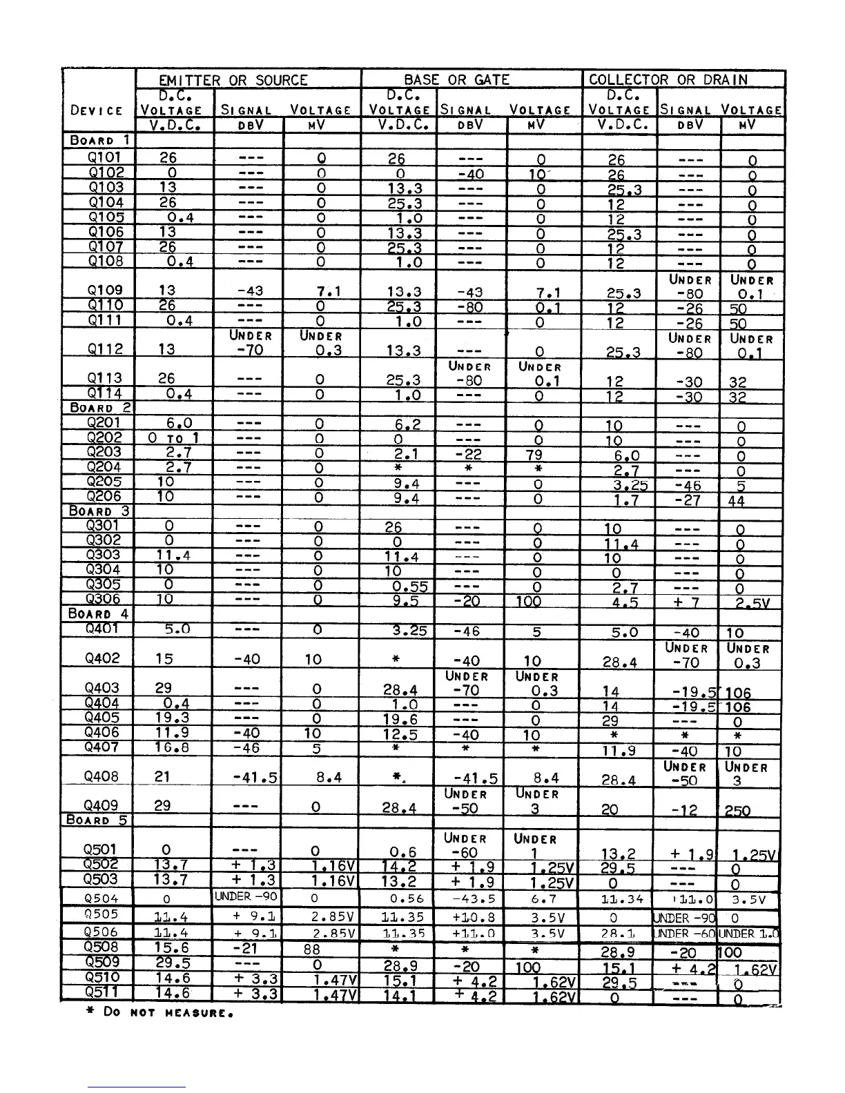TEST VOLTAGES, TRANSISTORS - TABLE 2B