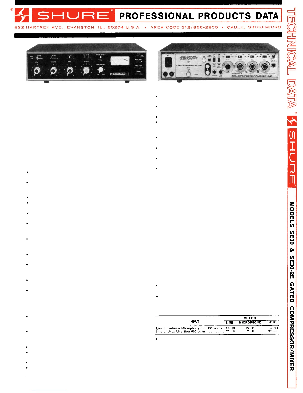 The Shure Model SE30* Gated Compressor/Mixer is a