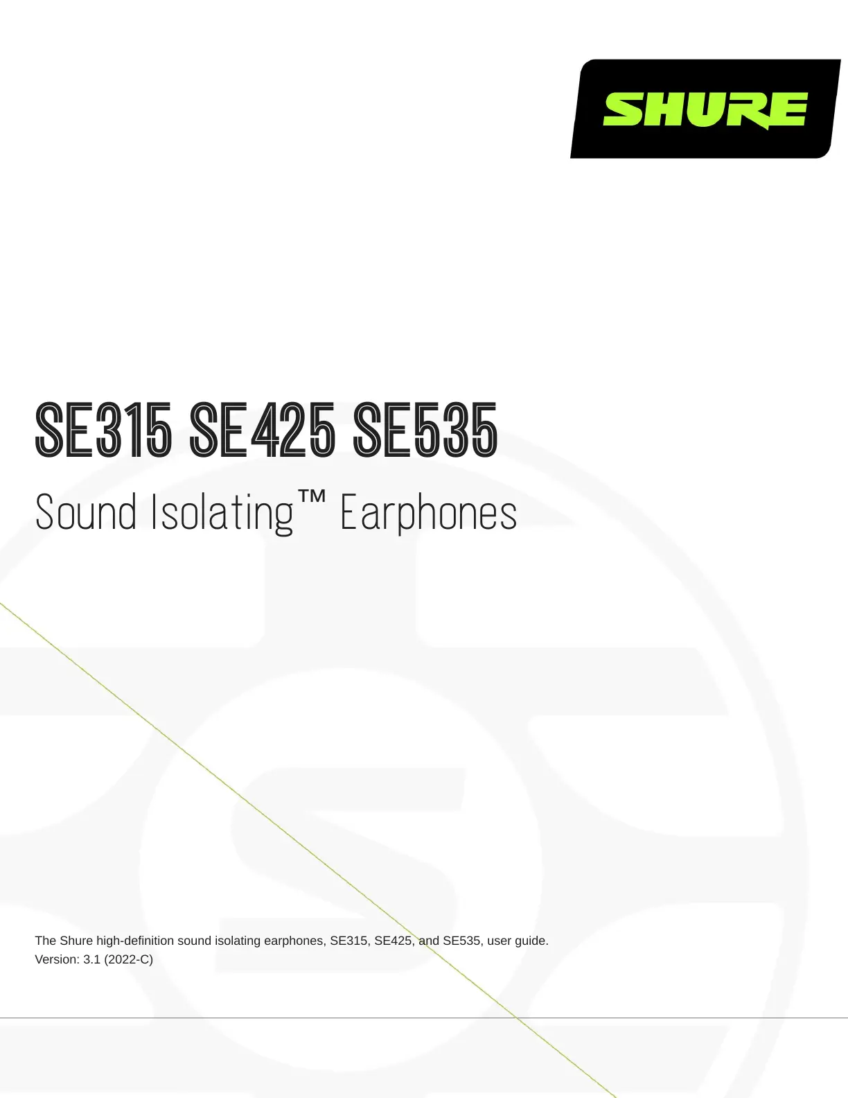 The Shure high-definition sound isolating earphones, SE315, SE425, and SE535, user guide.