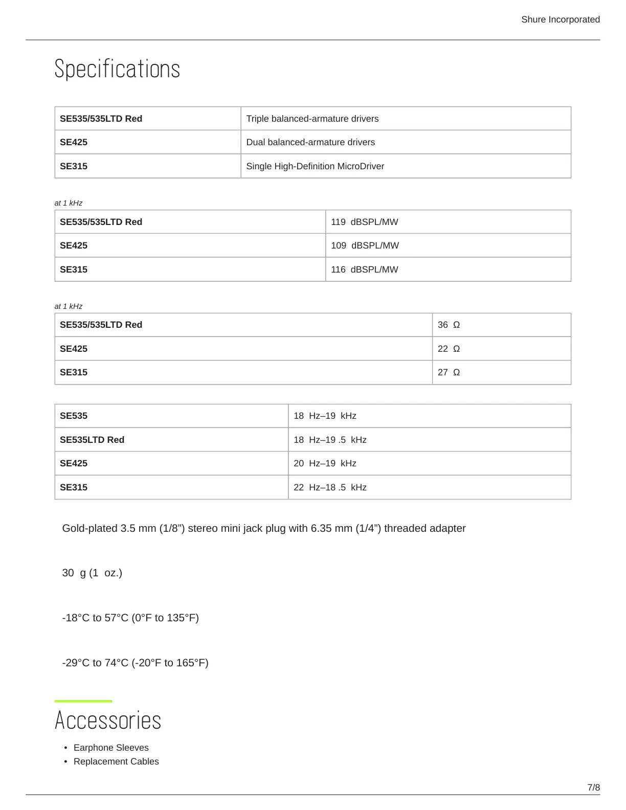 SE535 18Hz–19kHz