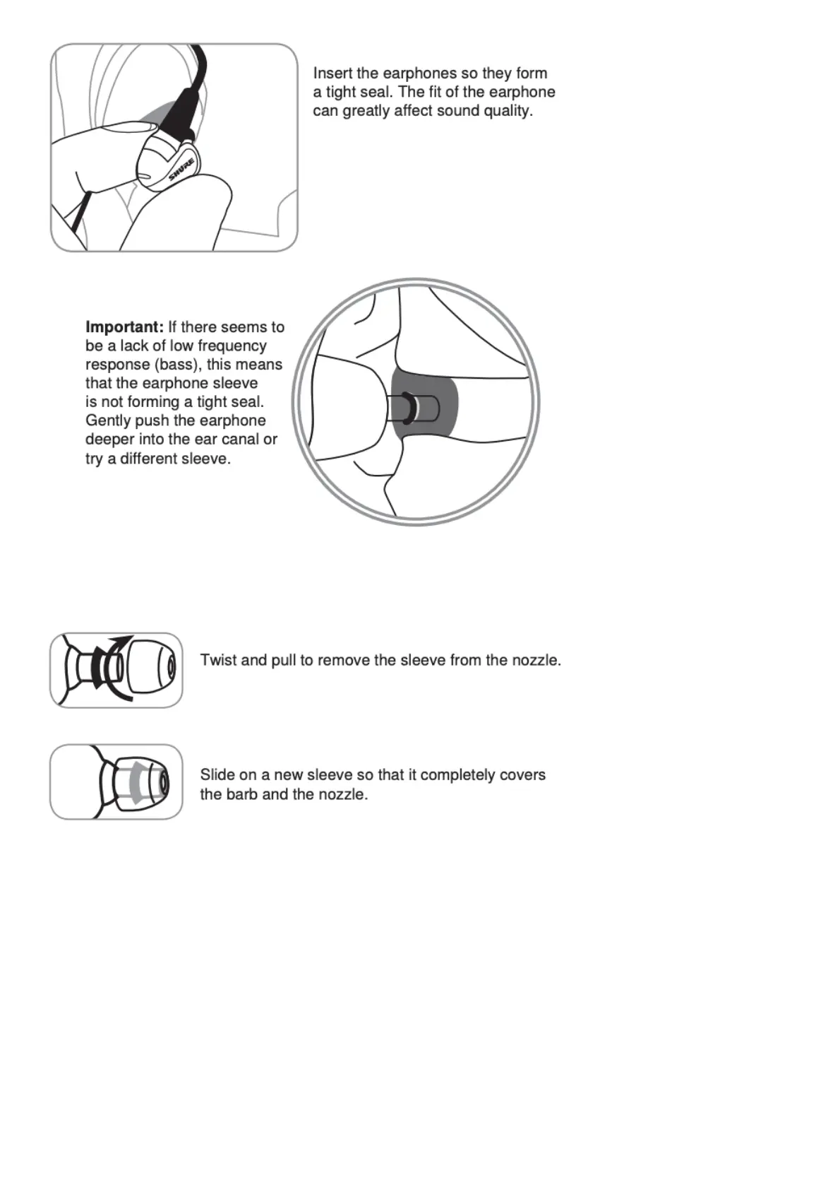 Warning: Do not push the earphone sleeve beyond the ear canal opening.