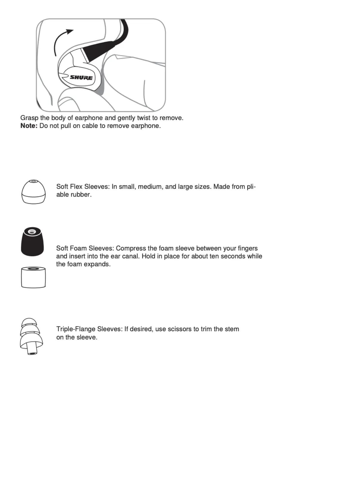 Select an earphone sleeve that provides the best fit and sound isolation. It should be easy to insert, fit