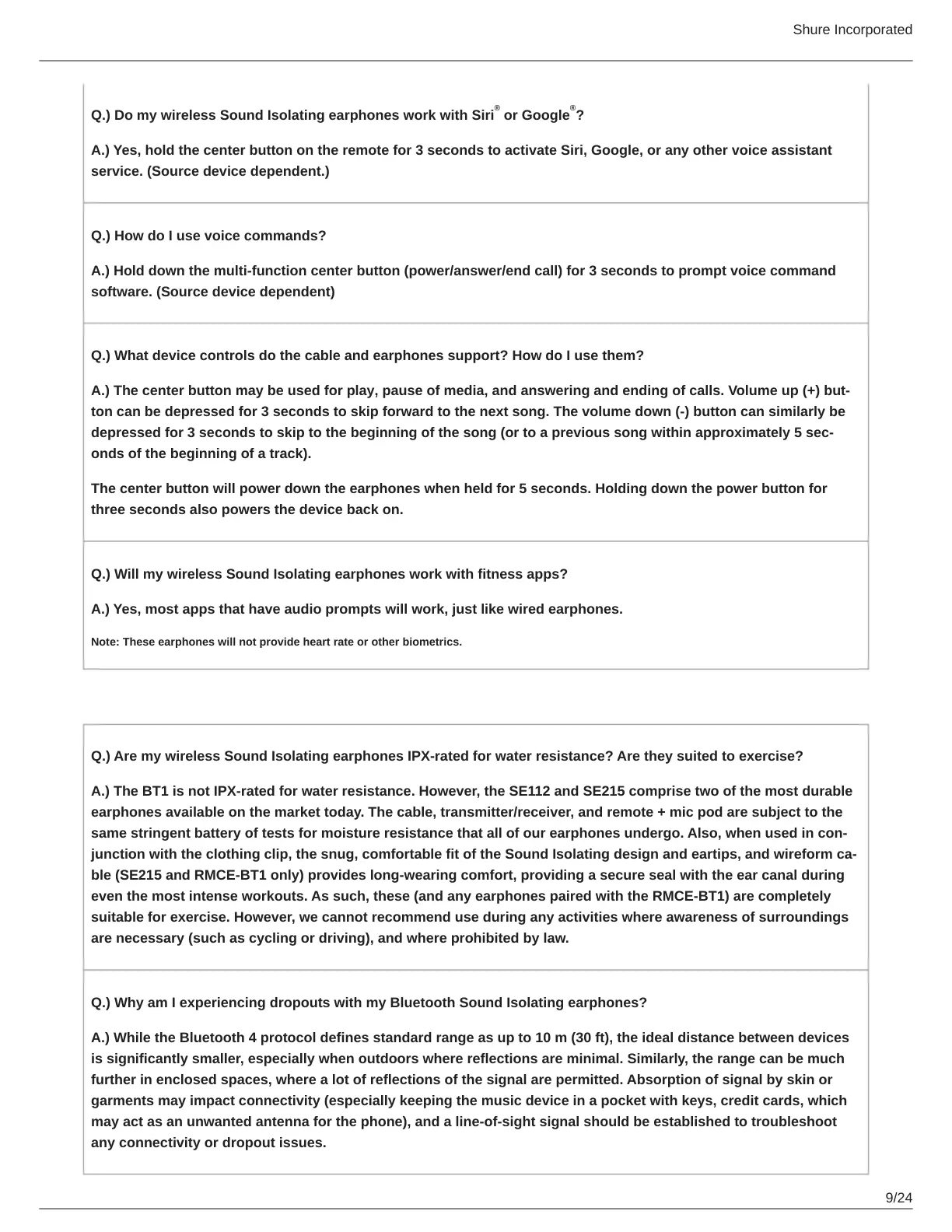 Q.) Do my wireless Sound Isolating earphones work with Siri or Google ?