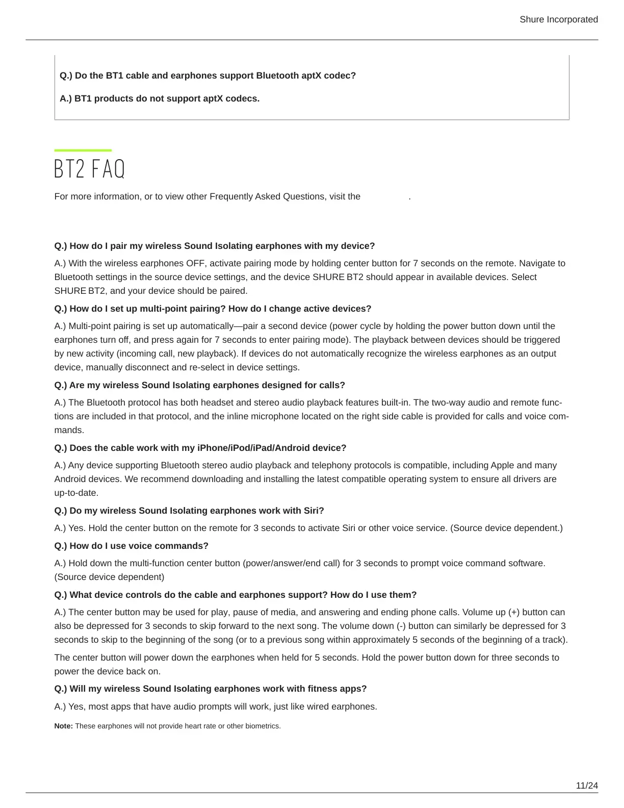 Q.) Do the BT1 cable and earphones support Bluetooth aptX codec?