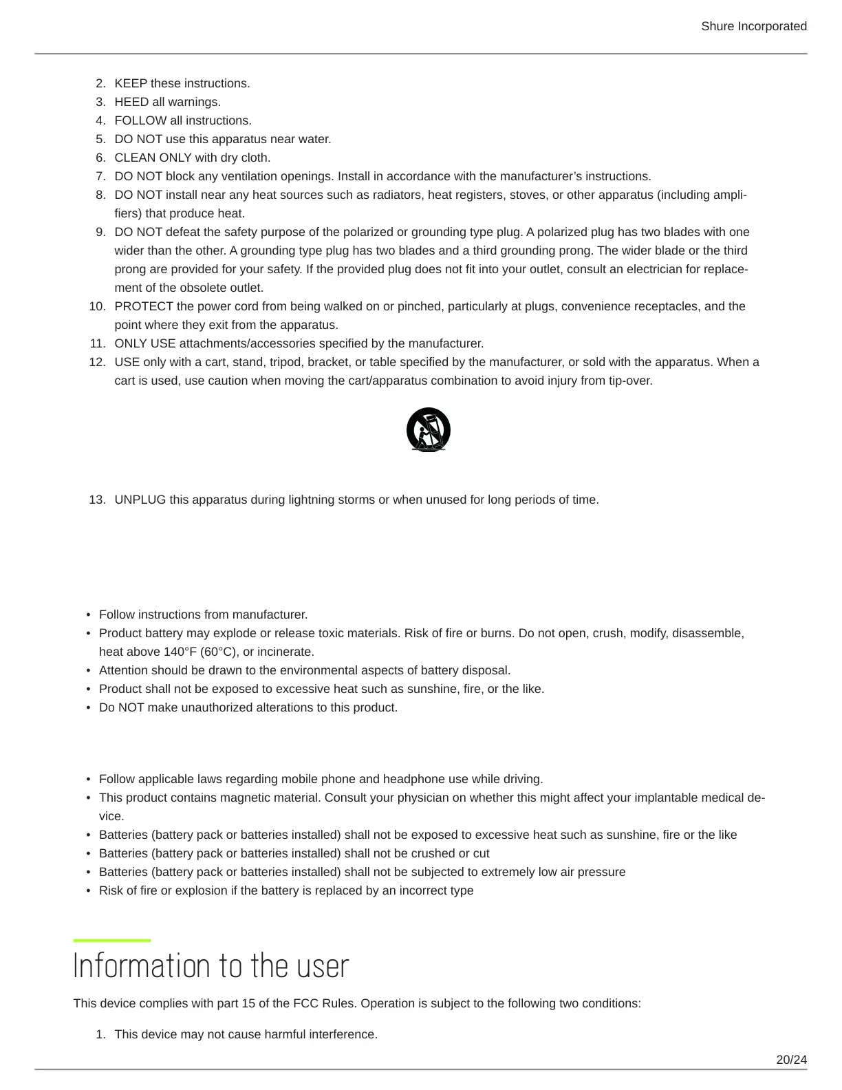 cart is used, use caution when moving the cart/apparatus combination to avoid injury from tip-over.