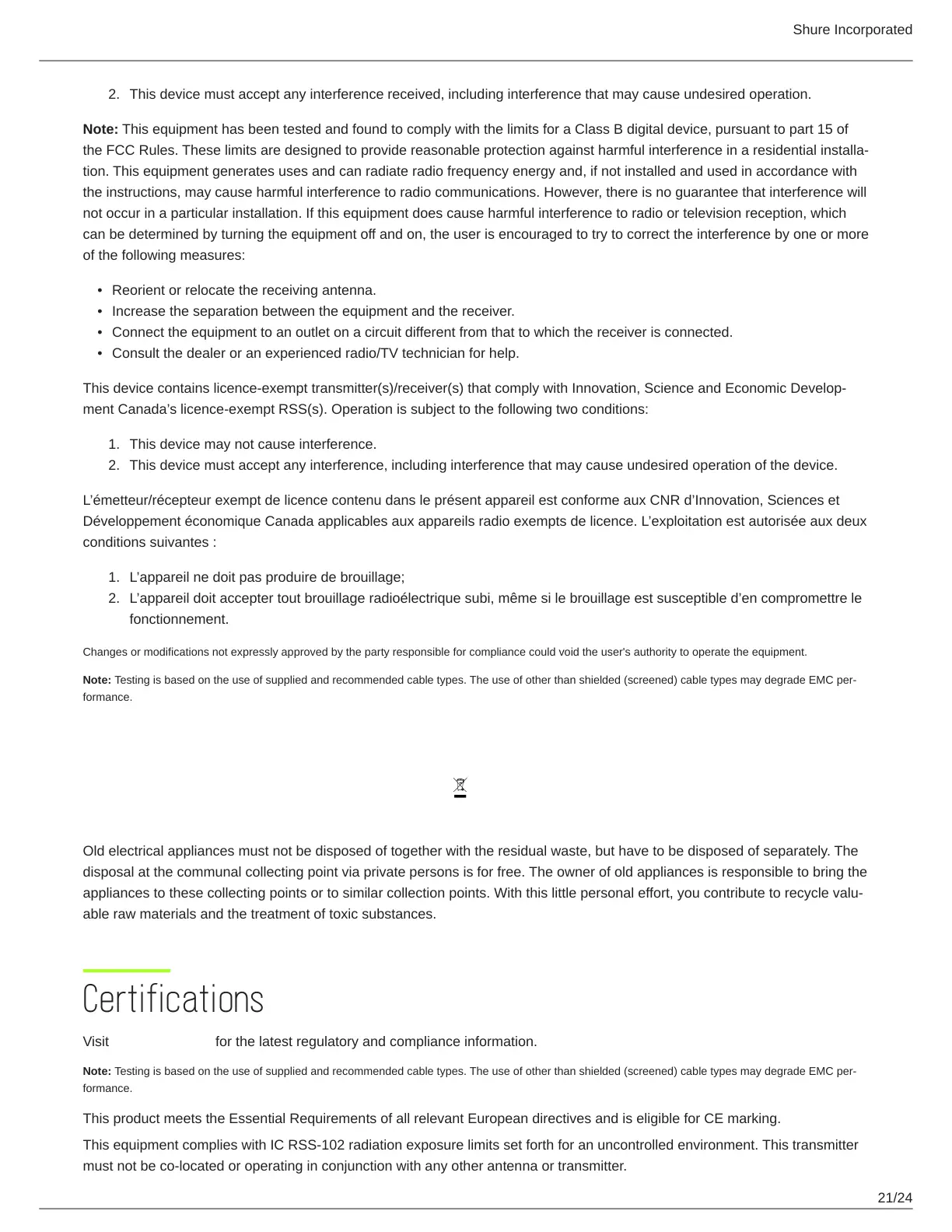 Visit www.shure.com for the latest regulatory and compliance information.