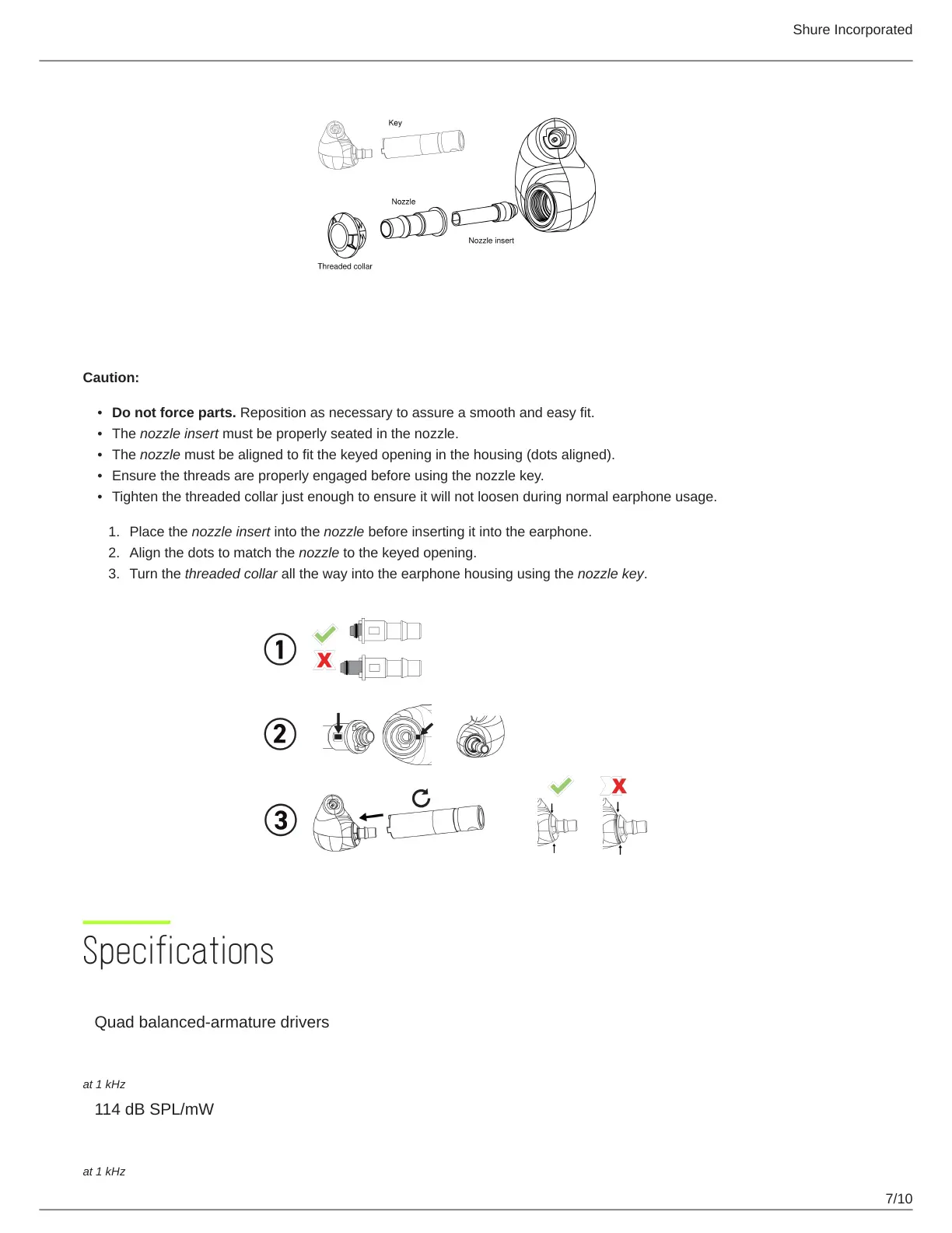 Place the nozzle insert into the nozzle before inserting it into the earphone.
