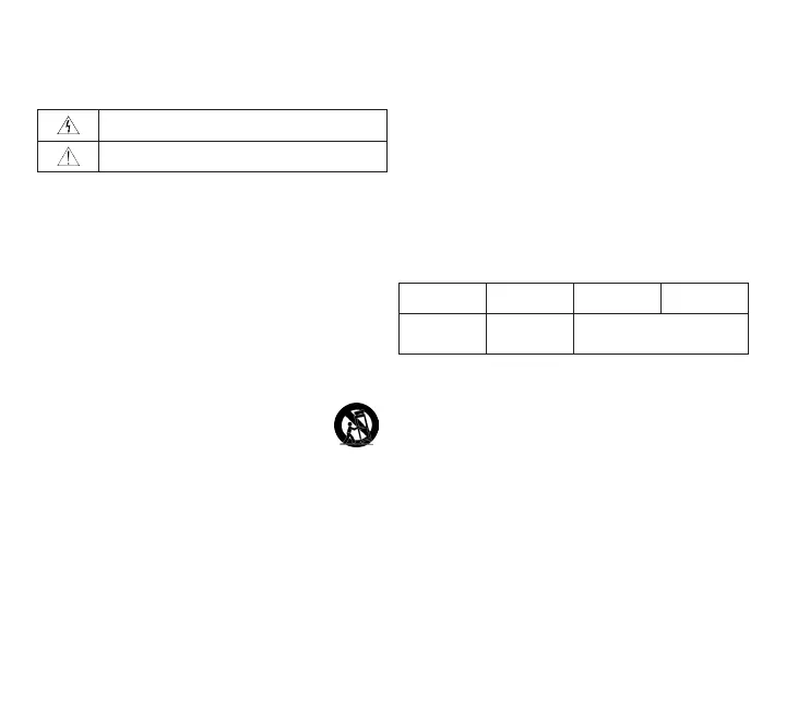 이 기호는 기기에 전기 쇼크 위험을 유발하는 위험한 전압이 흐른다는