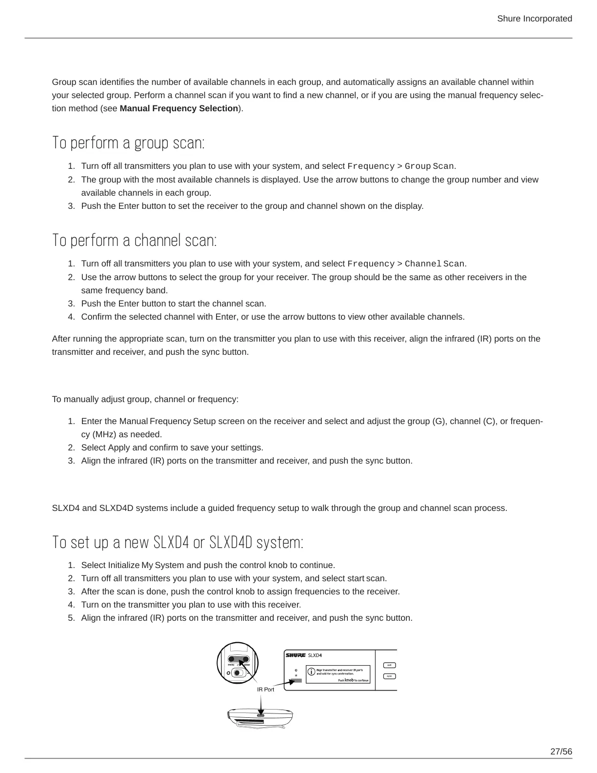 SLXD4 and SLXD4D systems include a guided frequency setup to walk through the group and channel scan process.