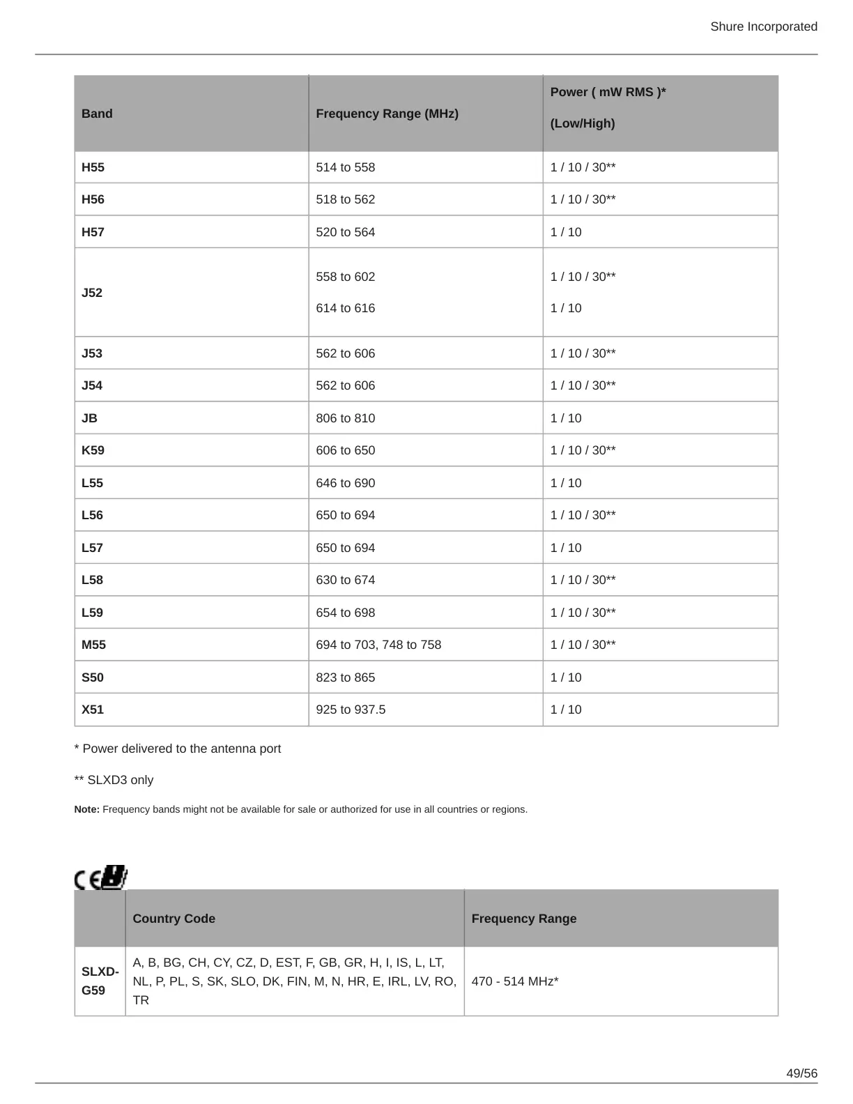 Note: Frequency bands might not be available for sale or authorized for use in all countries or regions.